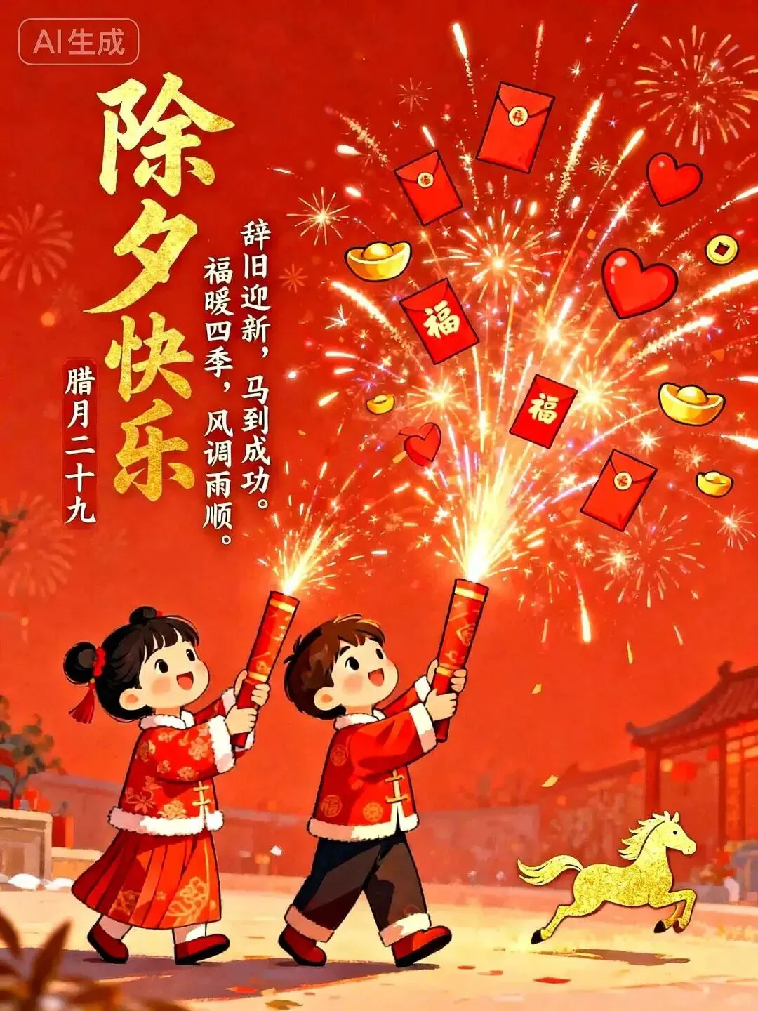除夕,除去烦恼,迎接希望;守岁,守住好运,岁岁平安;迎新,迎来快乐,万象更新;祈福,祈祷送福,祝福添福。除夕快乐!🌹🌺❤️🙏🎈🎉
