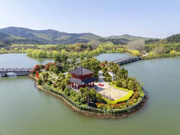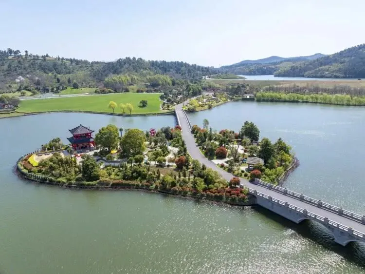生态休闲区中四五个小型湖泊,错落有致地点缓在山林之间,廊桥连为一体,打造了千年银杏林、天鹅湖、四季花园、黄金沙滩、音乐喷泉、梦幻迷宫等多处景观。