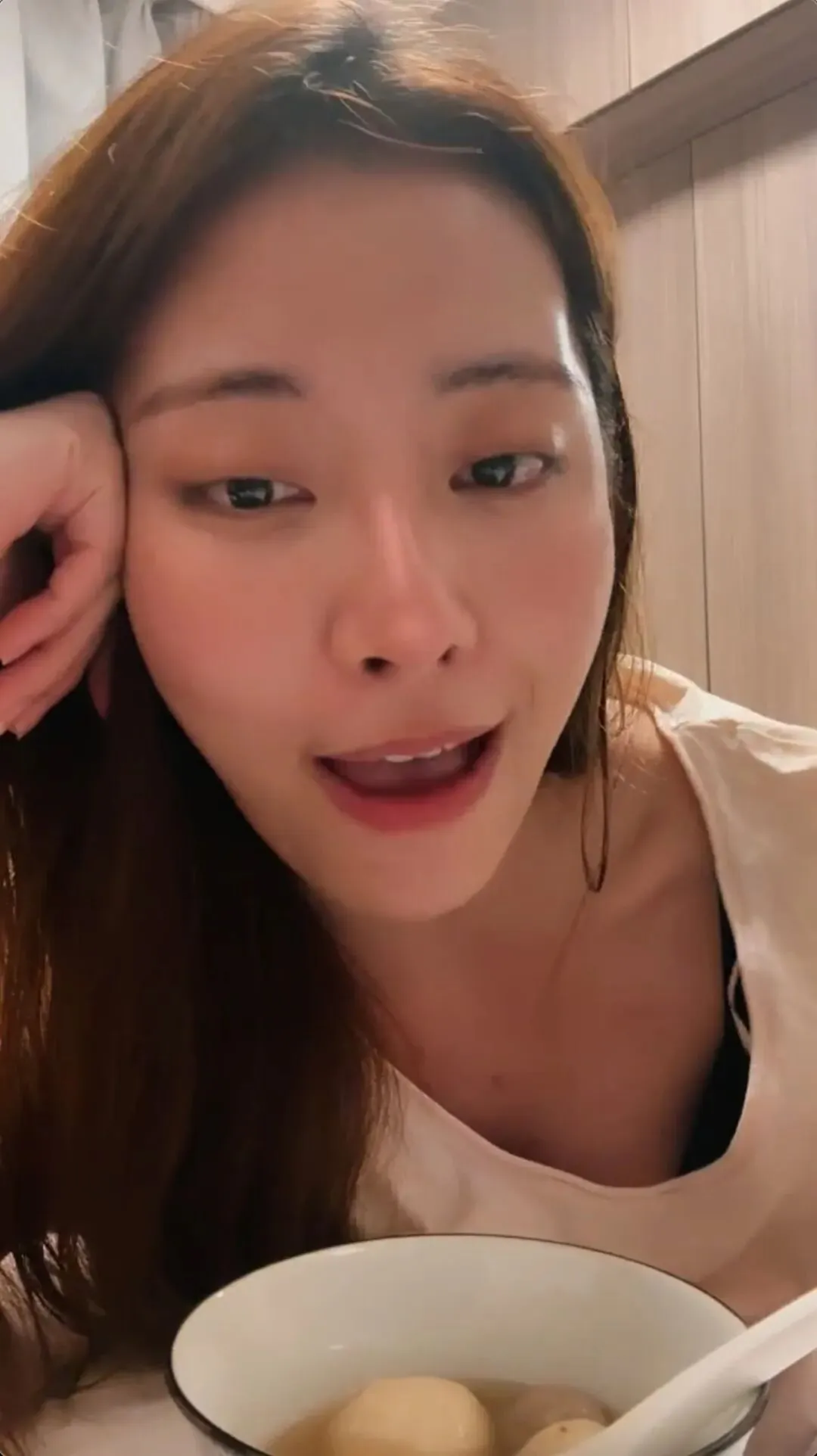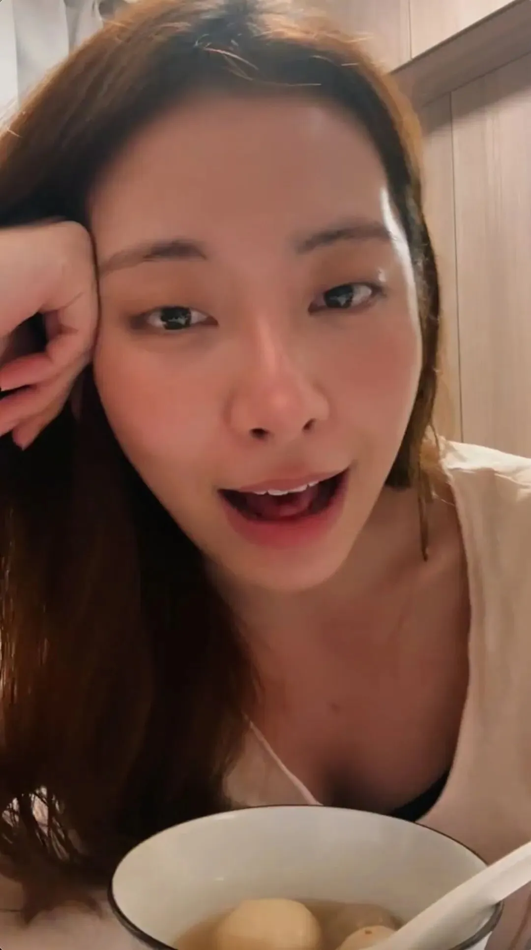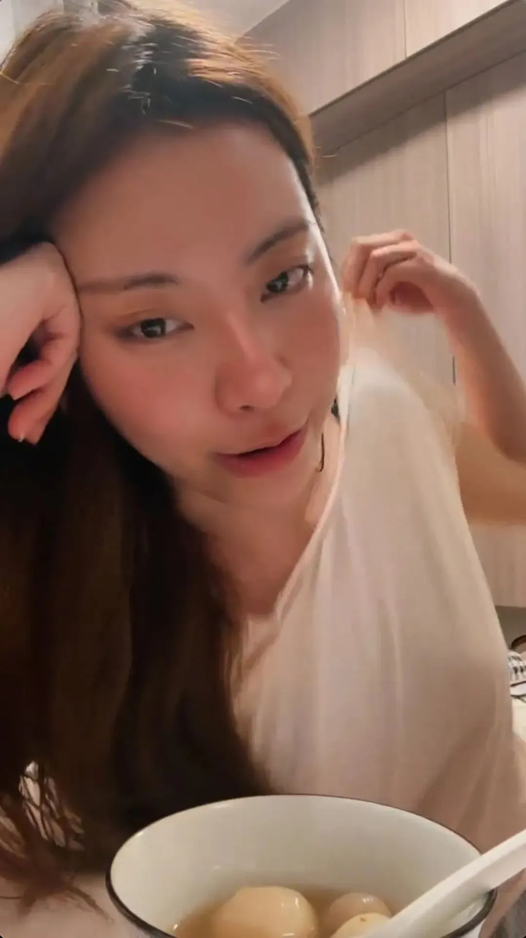 俞可程在直播中透露,當晚剛吃完「團年飯」,便留在家中與大家分享飯後甜品湯圓,她還問網民喜歡食芝麻味?還是跟她一樣喜歡花生味,「我食湯圓最緊要係個薑汁糖底,一定要重薑,最好係磨薑,再加埋冰糖同圓肉,咁先夠香。」