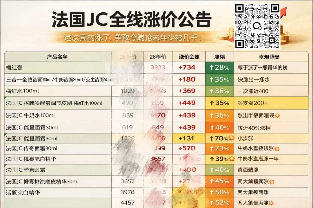 JC从2026年1月1日已经全线涨价,涨价幅度不低的,提前锁价买到的已经赚到了,还在调价中👇