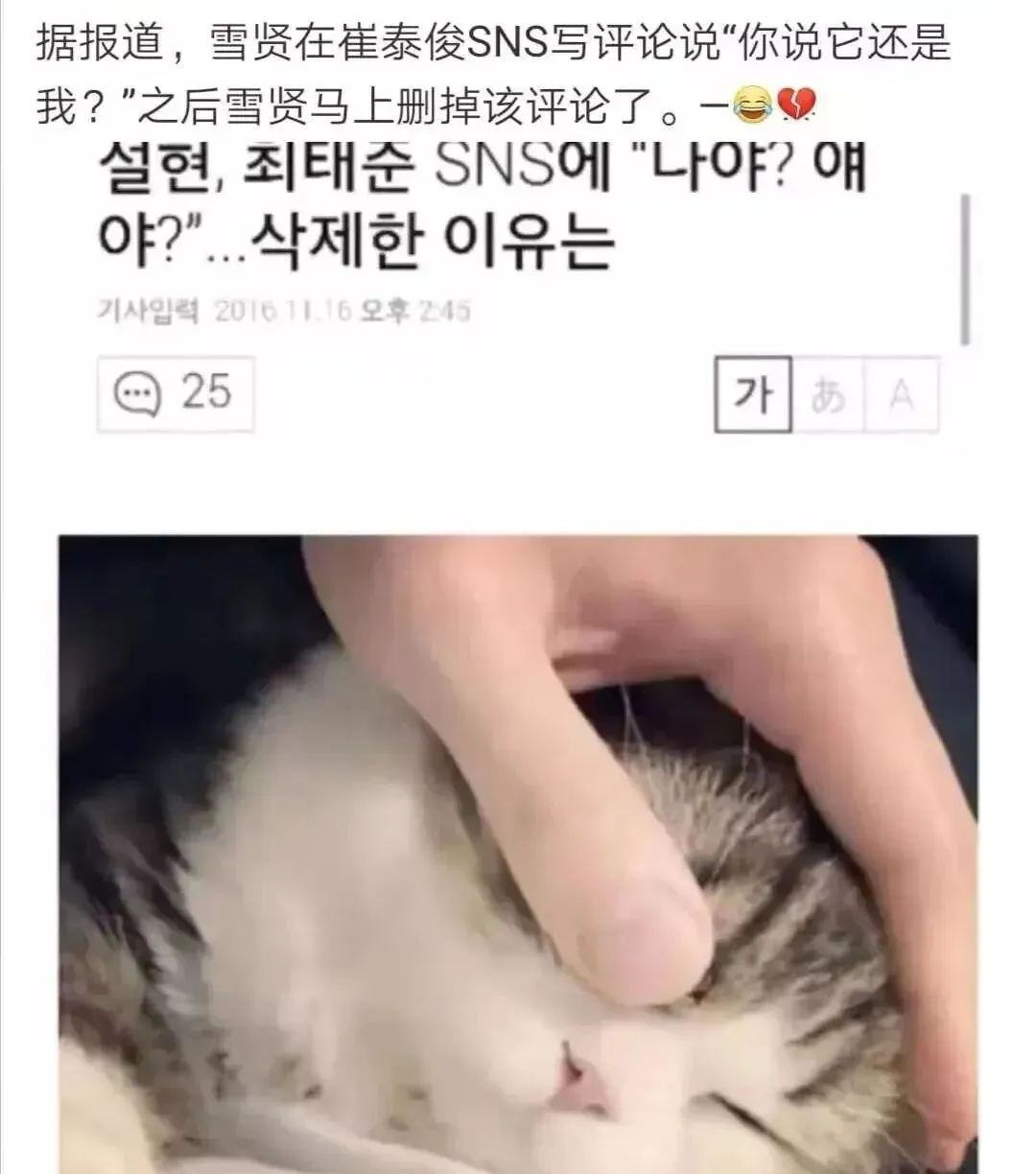 当时崔渣男发了条猫咪的SNS,说:这么可爱啊,我无法抗拒。