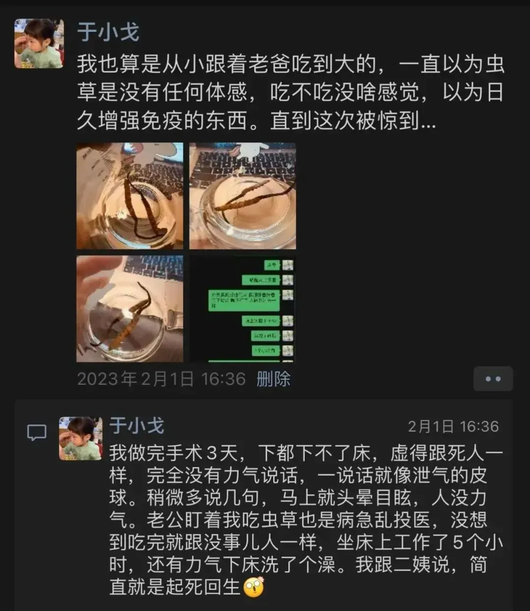 咕那阵子每天两根虫草,三四天以后,很明显那种空的感觉消失了。