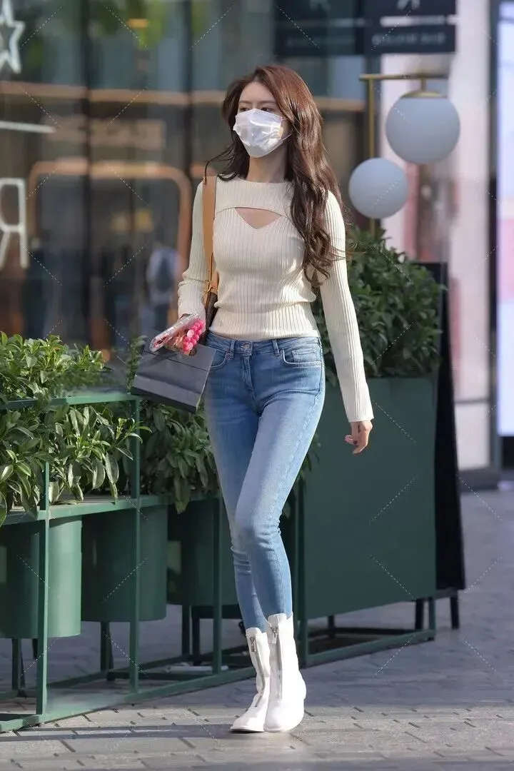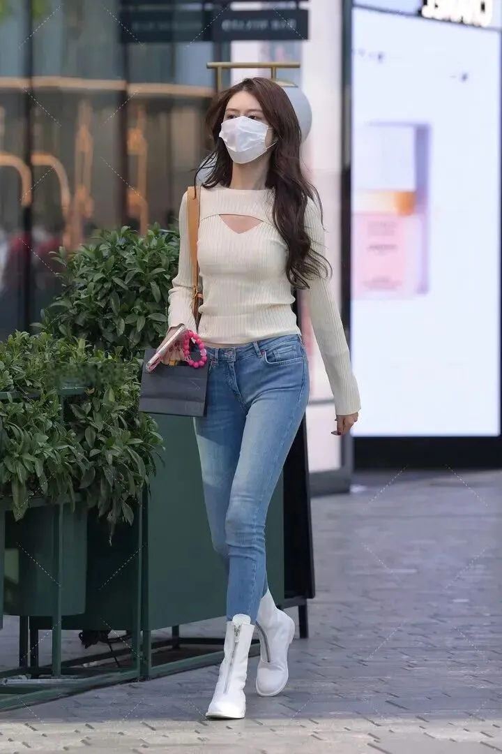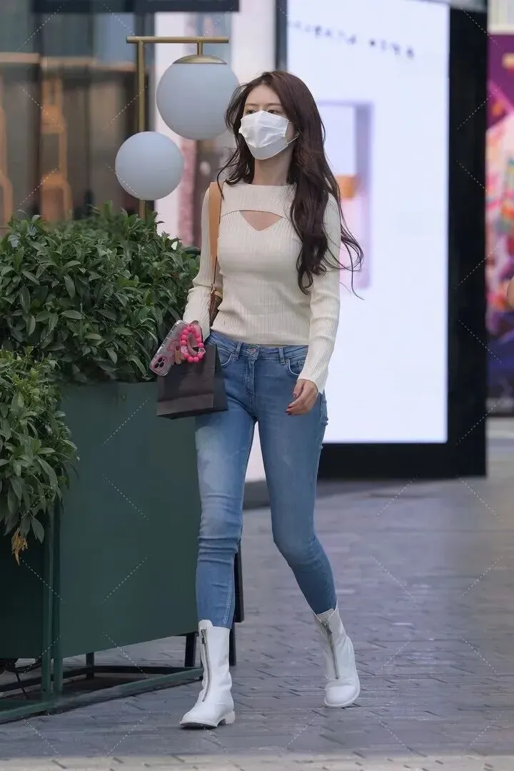 脚上.是一双白色.短靴,靴.筒侧面有拉.链,穿脱起.来特别.快。白色和.整体色调很.配,让脚部.和腿.部线.条连在一起.,看起来更.修长。.这种.靴子真的.很百搭,不.管是配.裙子还是.裤子.都好看,.买一.双能穿好.多个.季节。