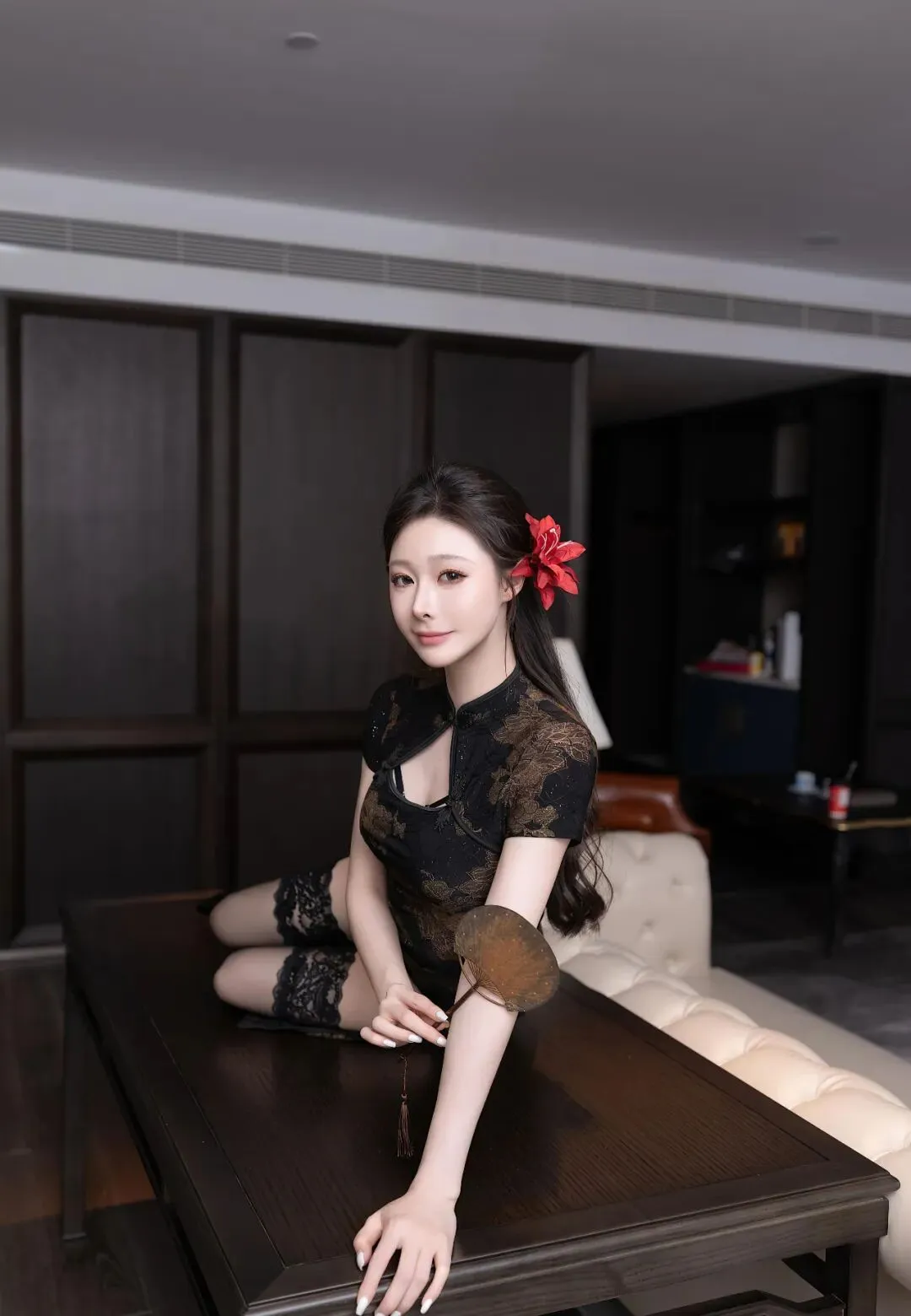 这套造型以 “黑金撞色” 为核心,将传统旗袍的雅致与现代性感融合,完美适配复古写真、高端约会、民国风探店等场景,贵气又不艳俗。