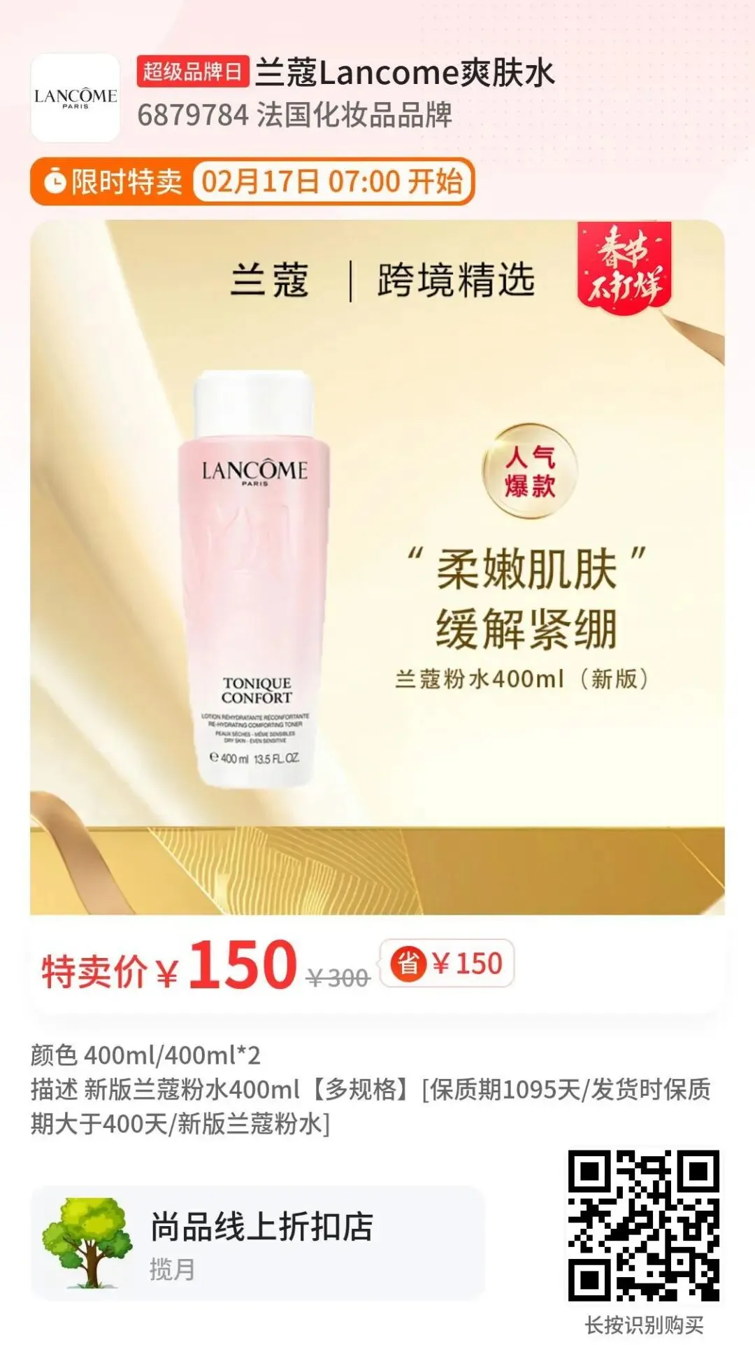 【兰蔻】【资生堂】美妆|礼遇38女神节特惠!新版兰蔻粉水400ml只要150元