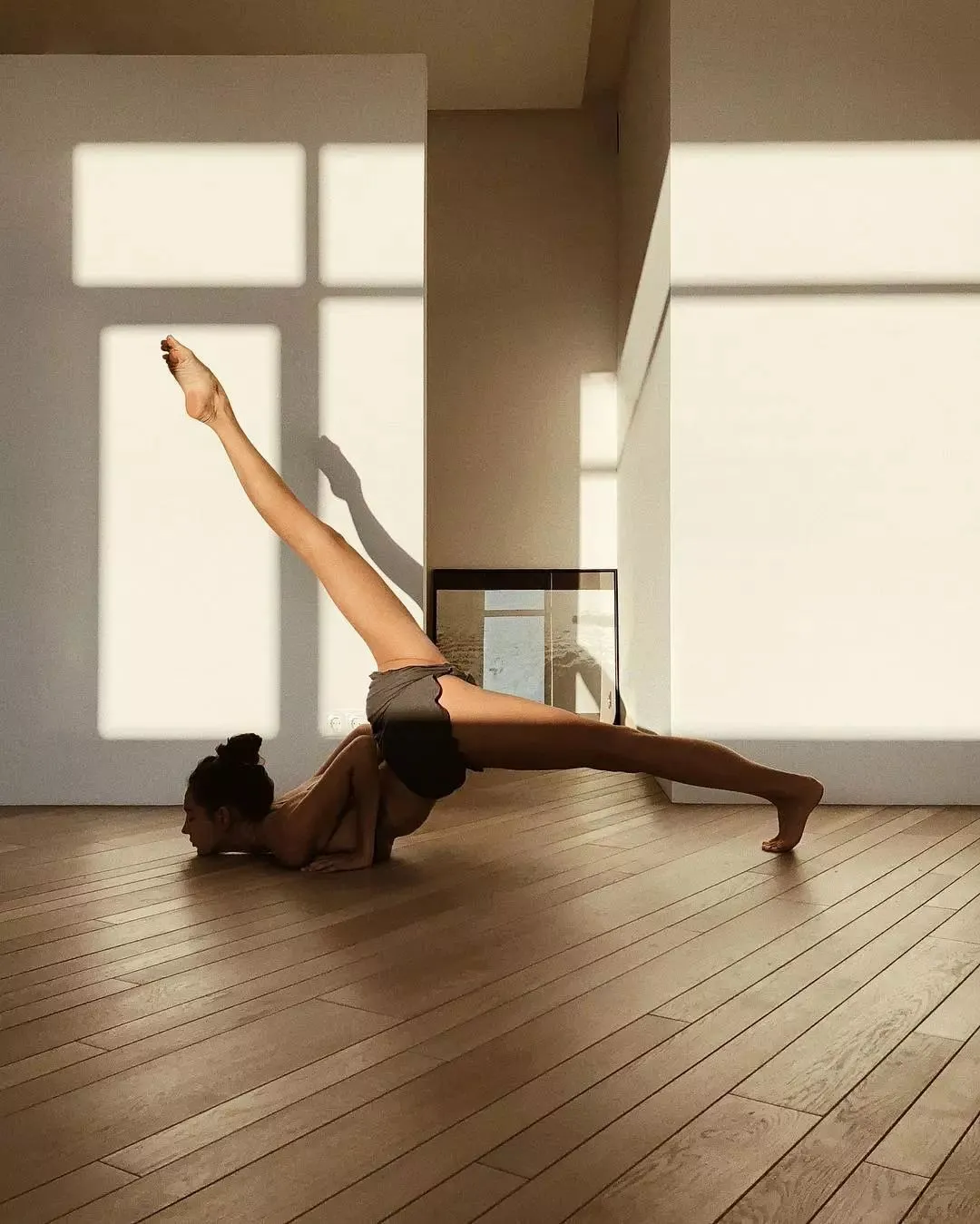 这么又细又长的美腿,除了上天的厚爱,也离不开她常年的瑜伽练习。