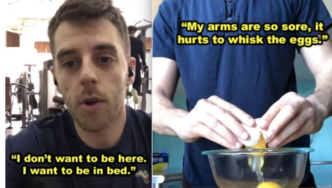 第一周挑战结束的时候,Spencer的浑身都很痛,疼到没有办法脱衣服,早餐打个鸡蛋也会觉得手臂酸痛。不过幸好,他之前采购并且批量制作的晚餐,放到微波炉里热一下就能吃,给他省去了很多做饭的烦恼。
