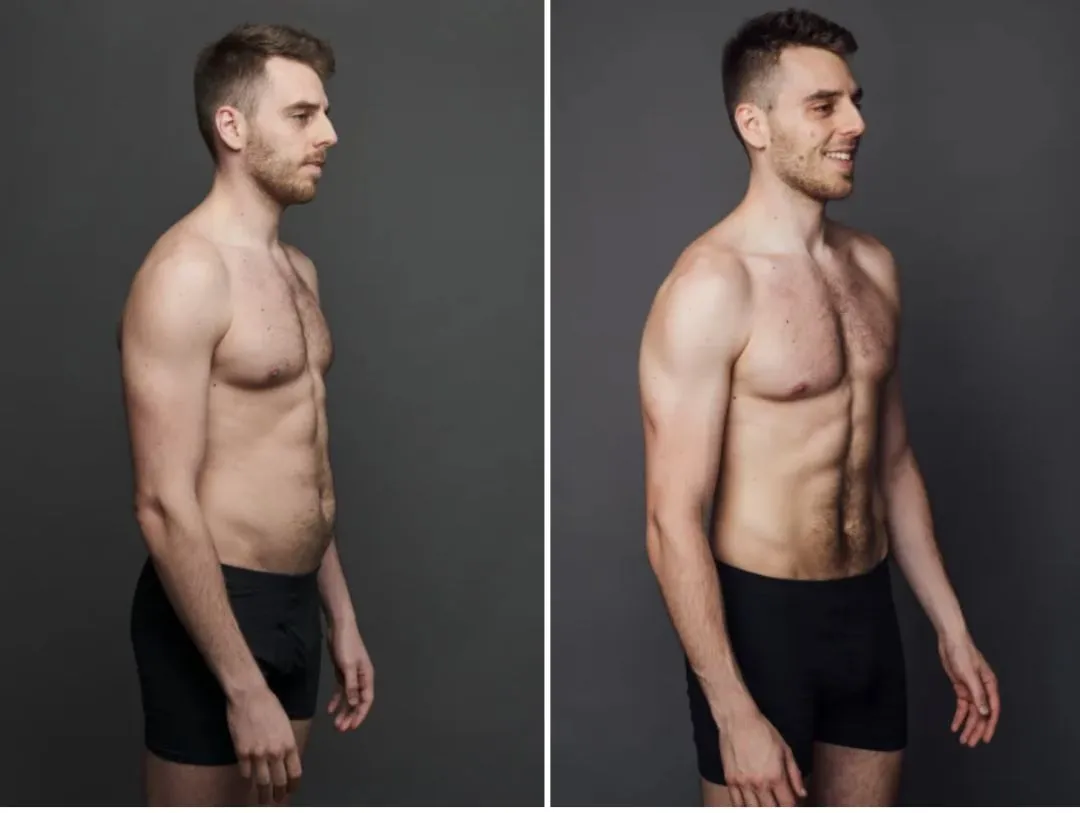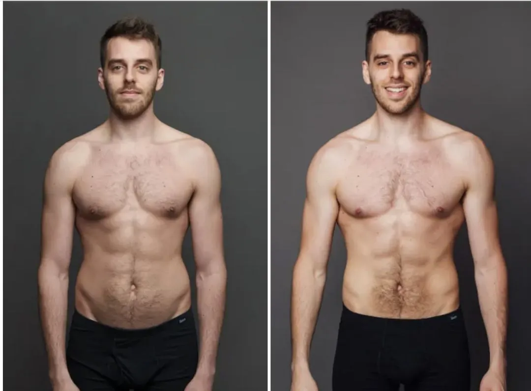 最后的变化是很明显的,经过了四个礼拜的练习,他的肌肉线条变得更加明显,而且体脂率从13.8%降到了11.2%,整个人也变得更强壮了。