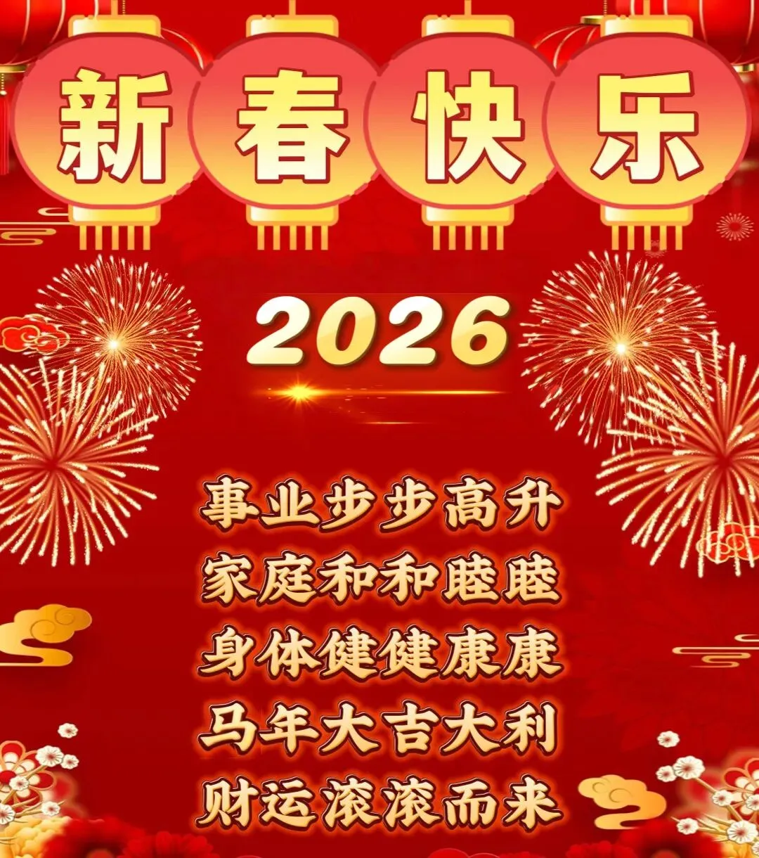 🌞光阴仍似箭,匆匆又一年,🌹鞭炮响震天,春节送祝愿:🌊先祝身体棒,再祝前路宽,🌷钱多钱少快乐点,知足常乐给力年。🍹2026春节愉快!🌈