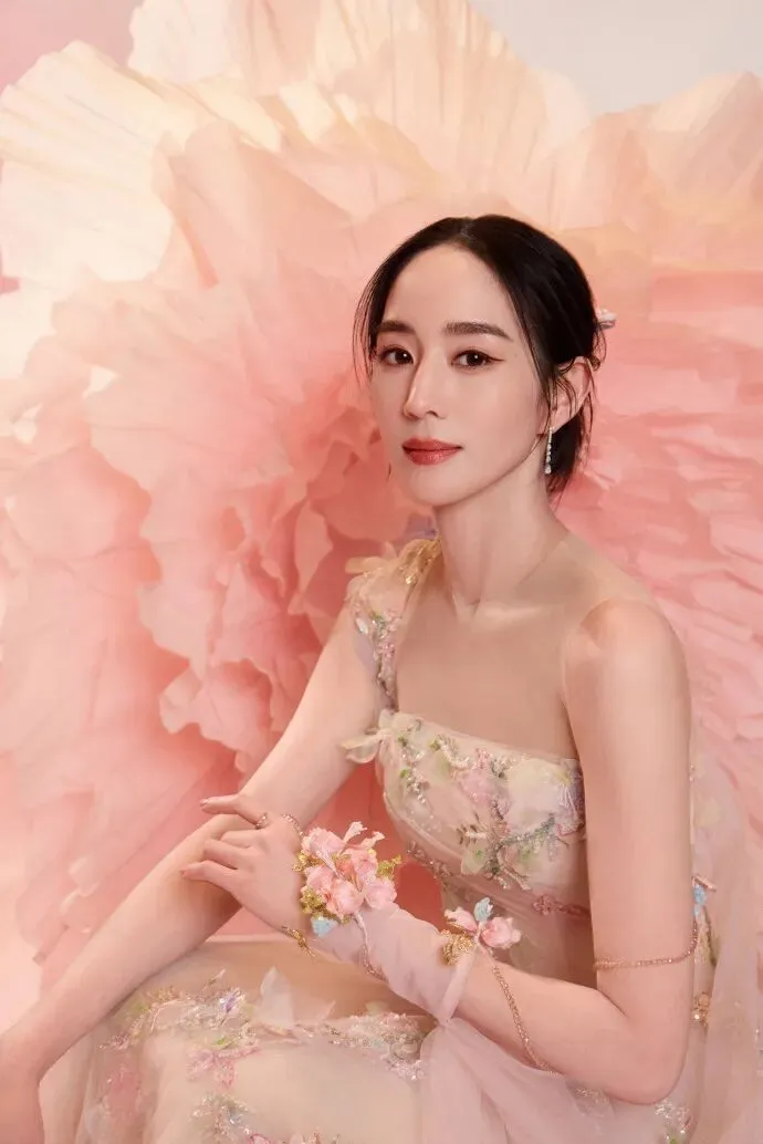 这一设计巧妙融合了传统工艺与现代舞台美学,非遗元素的运用凸显文化底蕴,而浅粉色调与她清冷的气质形成平衡,被形容为“一眼万年”“婉约派天花板”。