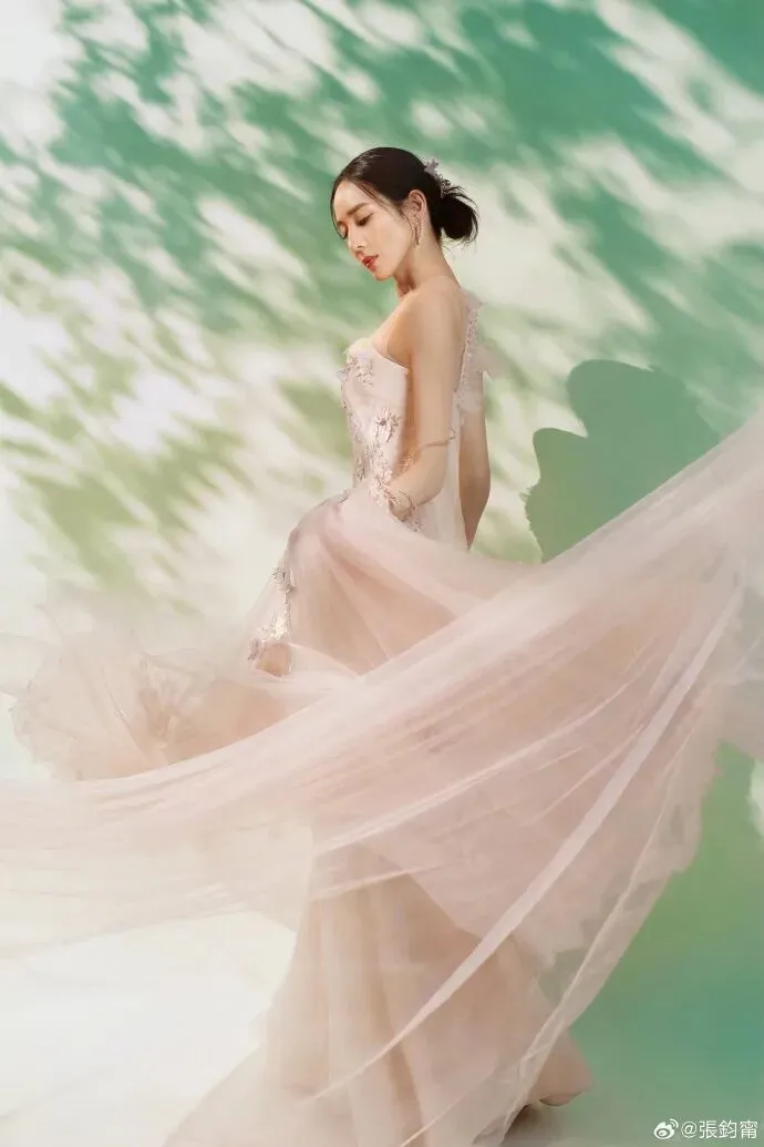 张钧甯粉裙写真性感撩人!被赞从画中走出的仙女