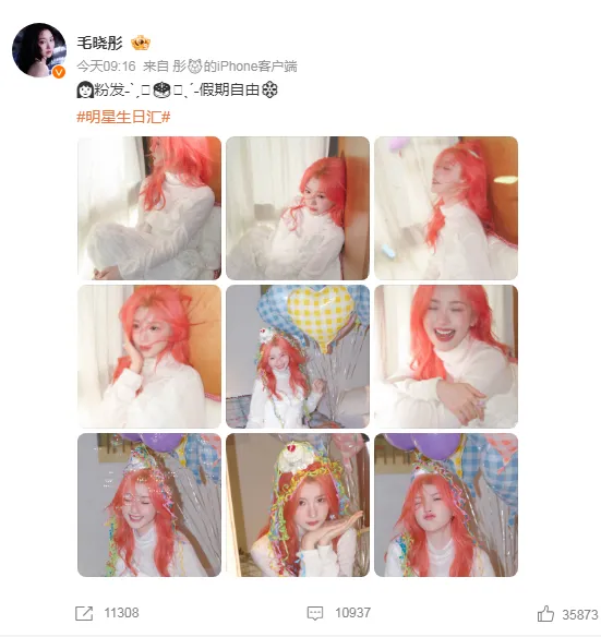 2026年2月16日是农历除夕,也是著名女星毛晓彤的生日,她在个人微博发布动态,配文“‍粉发˗ˋˏˎˊ˗假期自由️”,并同步晒出九宫格粉发写真,直接证实染发的事实。