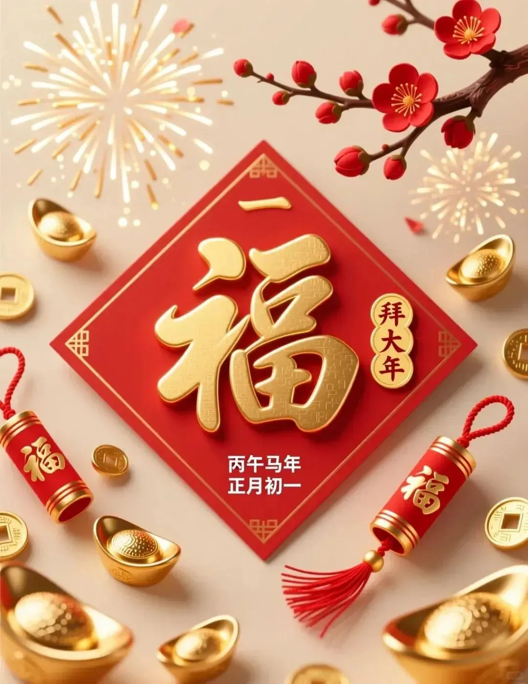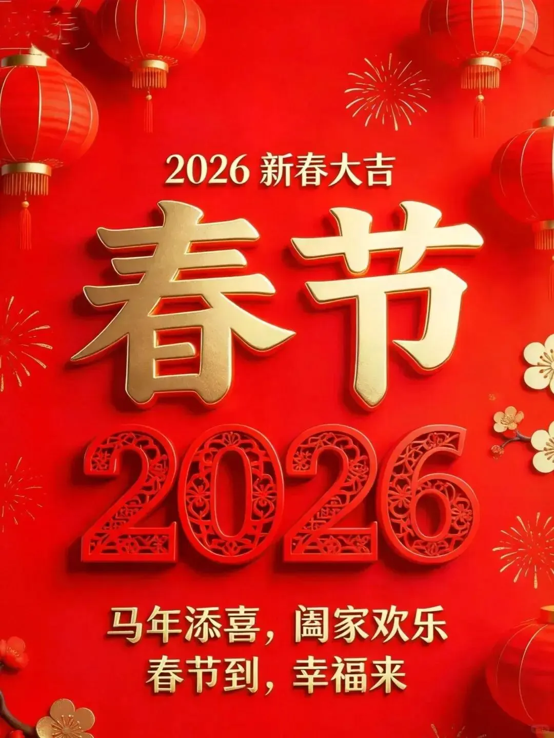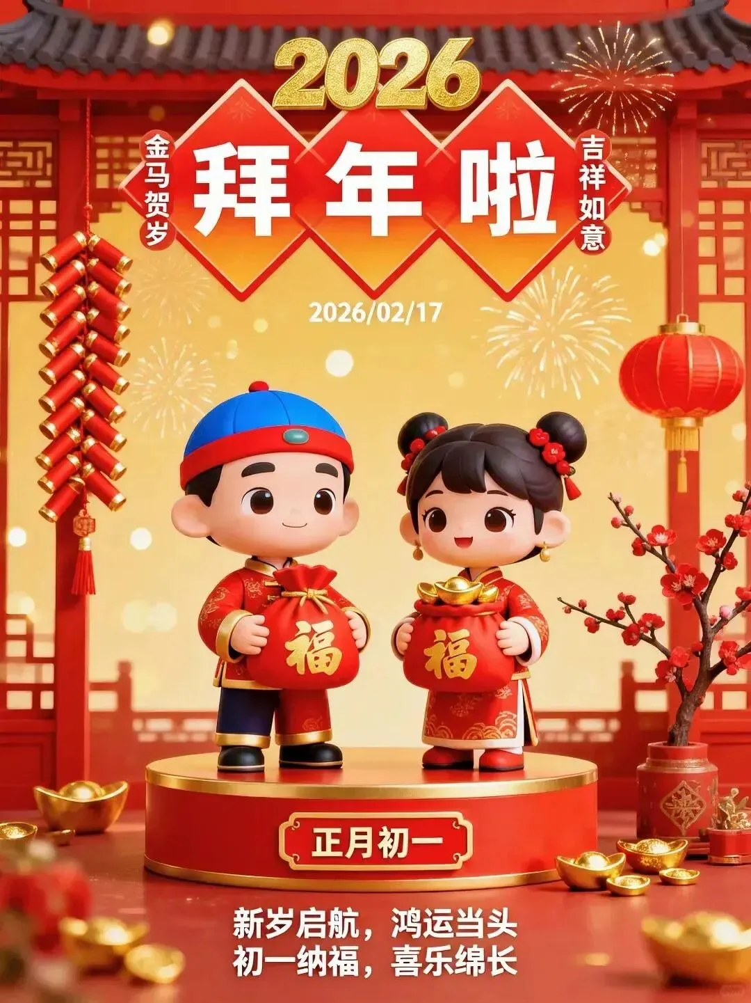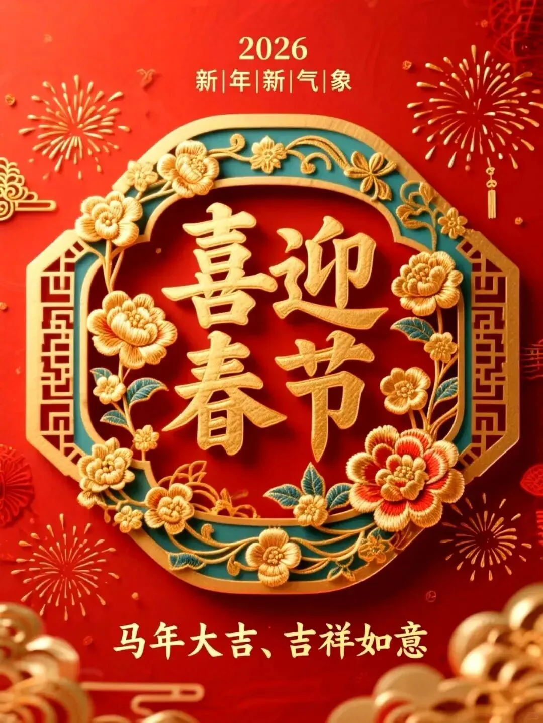 2026年2月17日春节祝福图片, 欢庆年,中国年,吉祥年,鸿运一年又一年