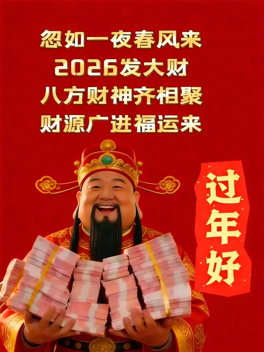 大年初一头一天,发发祝福拜大年,开开心心过新年,身体健康如意年!风生水起招财年,顺顺利利如意年!