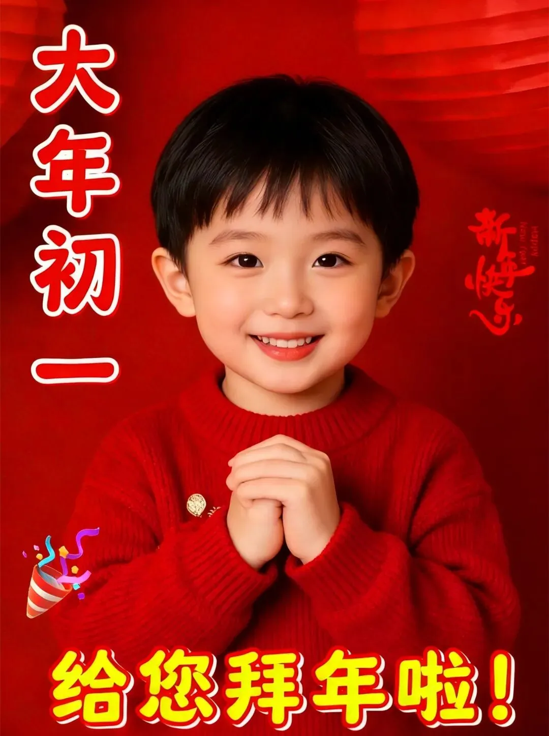 大年初一,新年的第一天,也是拜年送祝福的时光,把祝福送给最爱的家人和朋友们,也送给我们自己,新年的一年都要幸福美满快乐!