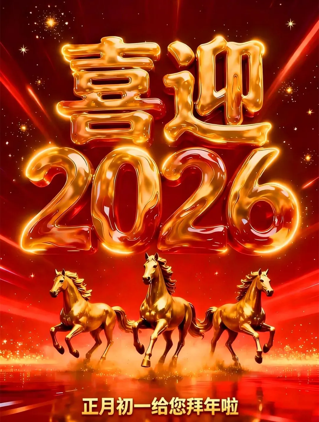 金马贺岁,大年初一,给大家拜年啦! 恭祝新春大吉,万事如意,愿烟火向星辰,愿所愿皆成真,愿大家新的一年,马到成功,一马当先,前程似锦,万事胜意!