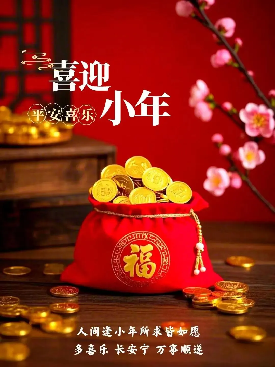 🌹❤️🌺一年一度又小年,家家户户笑开颜。扫去烦恼心敞亮,置办年货样样全。纤纤巧手贴窗花,走亲串友嘴上甜;八抬大轿送灶王,上天言喜福寿添。小年快乐!
