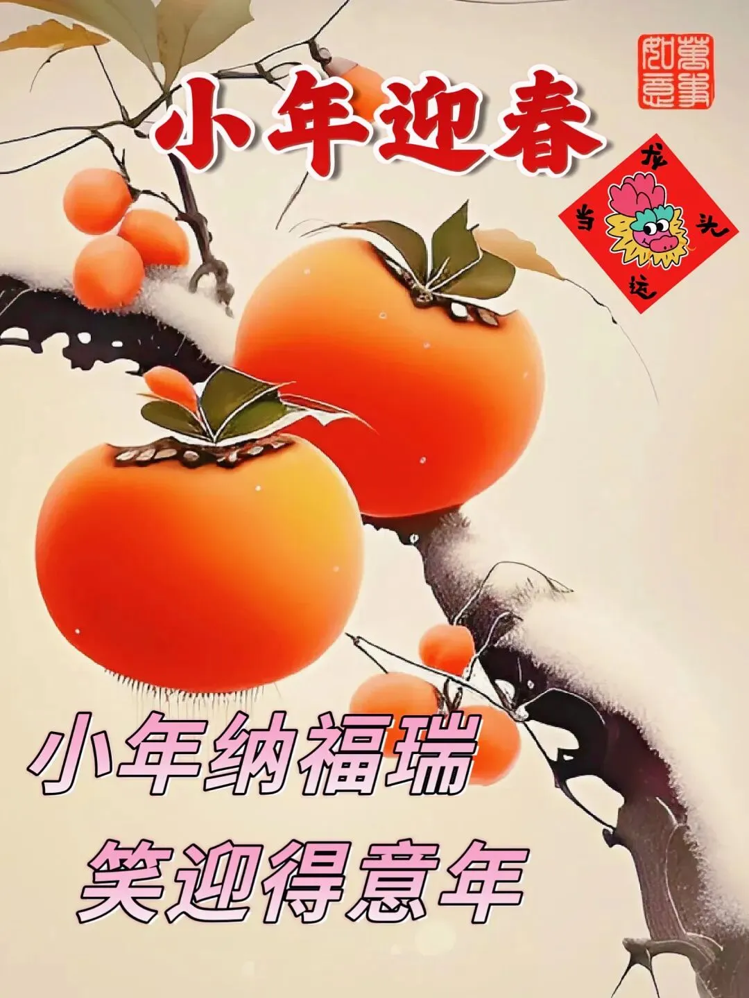 🌴🌾🍁雪花飘,寒意俏,年终了;人欢笑,喜意闹,小年到;买年货,事业好,步步高;迎灶神,家和气,乐淘淘;放鞭炮,进元宝,财神笑;小年来到,愿你既快乐又逍遥!