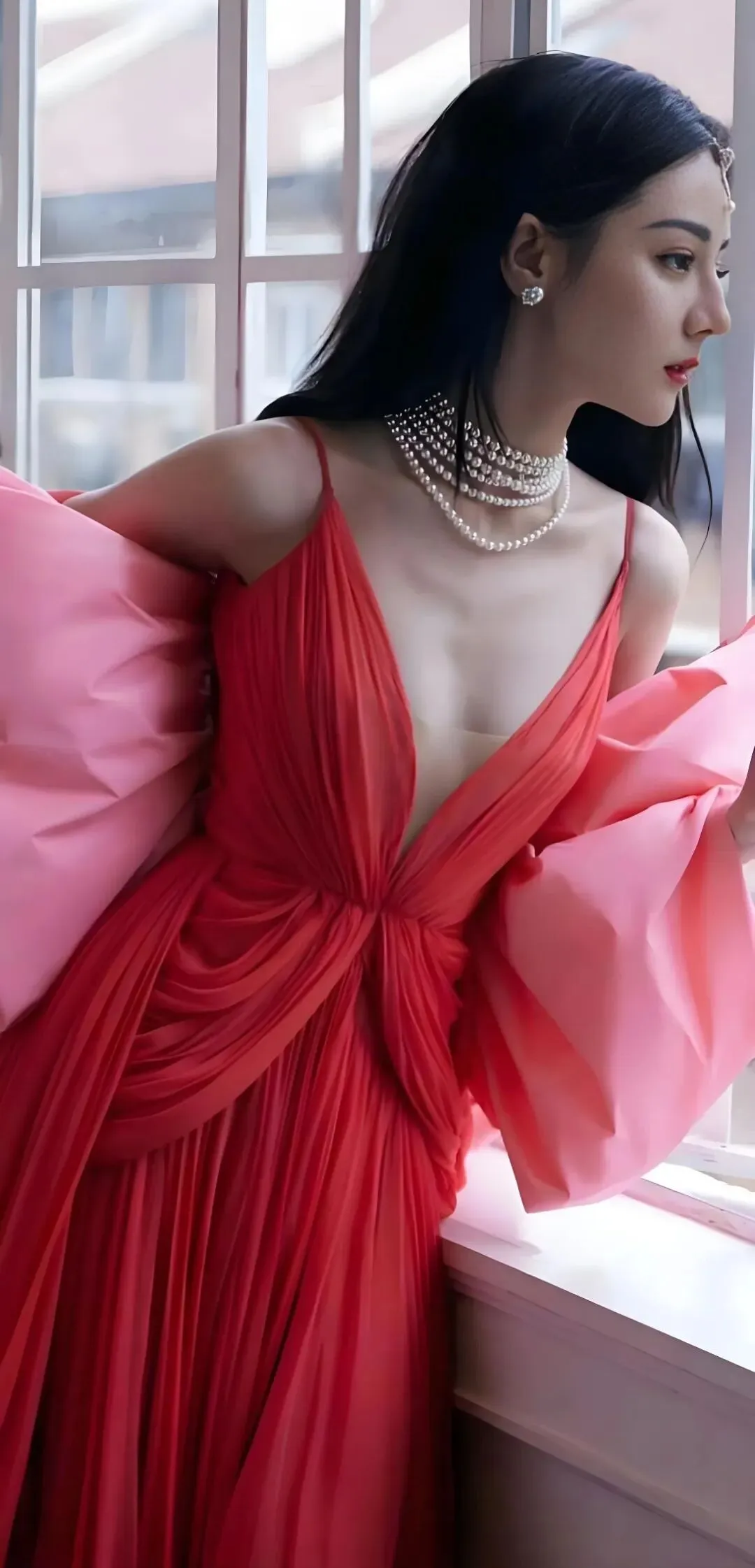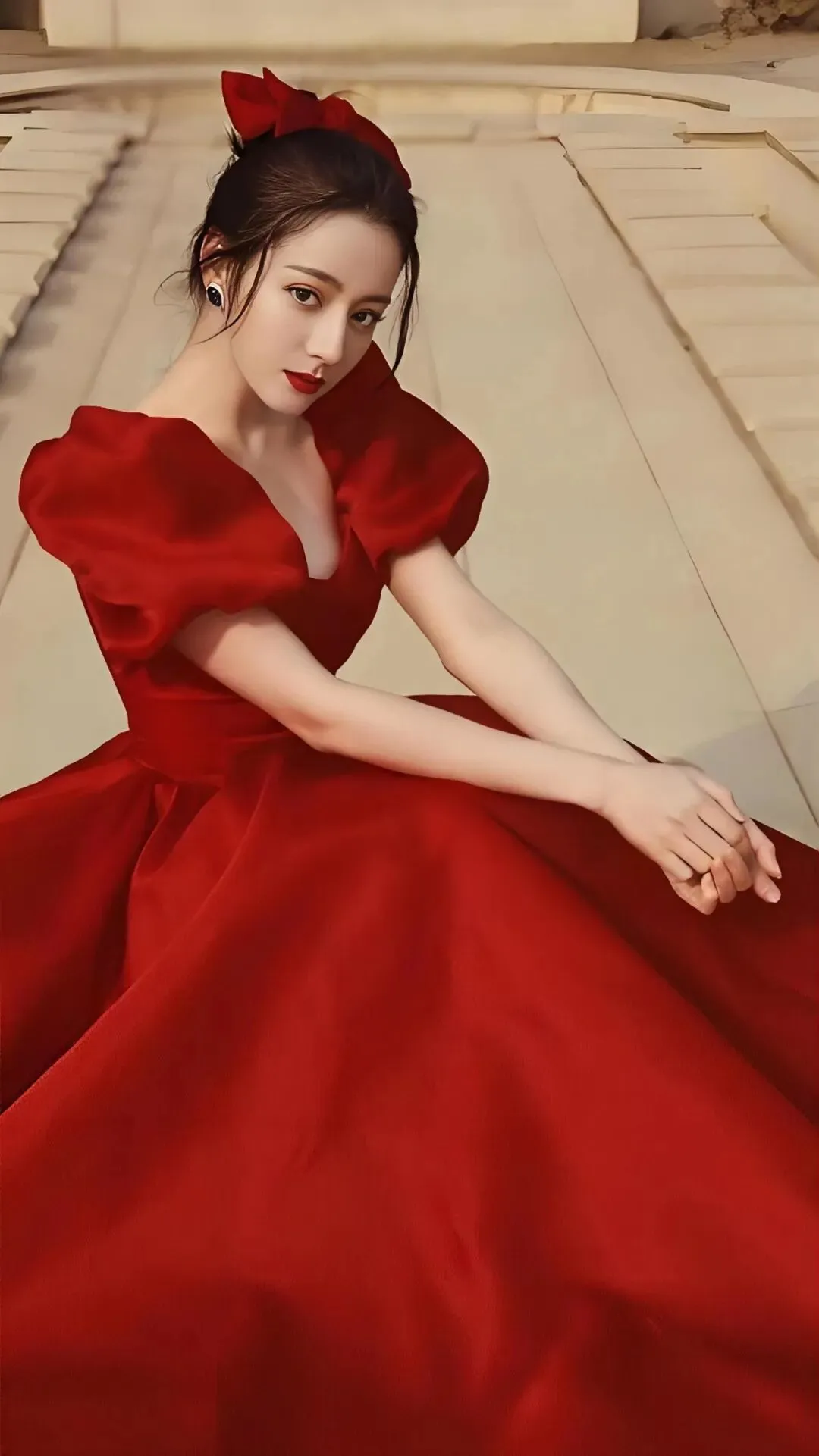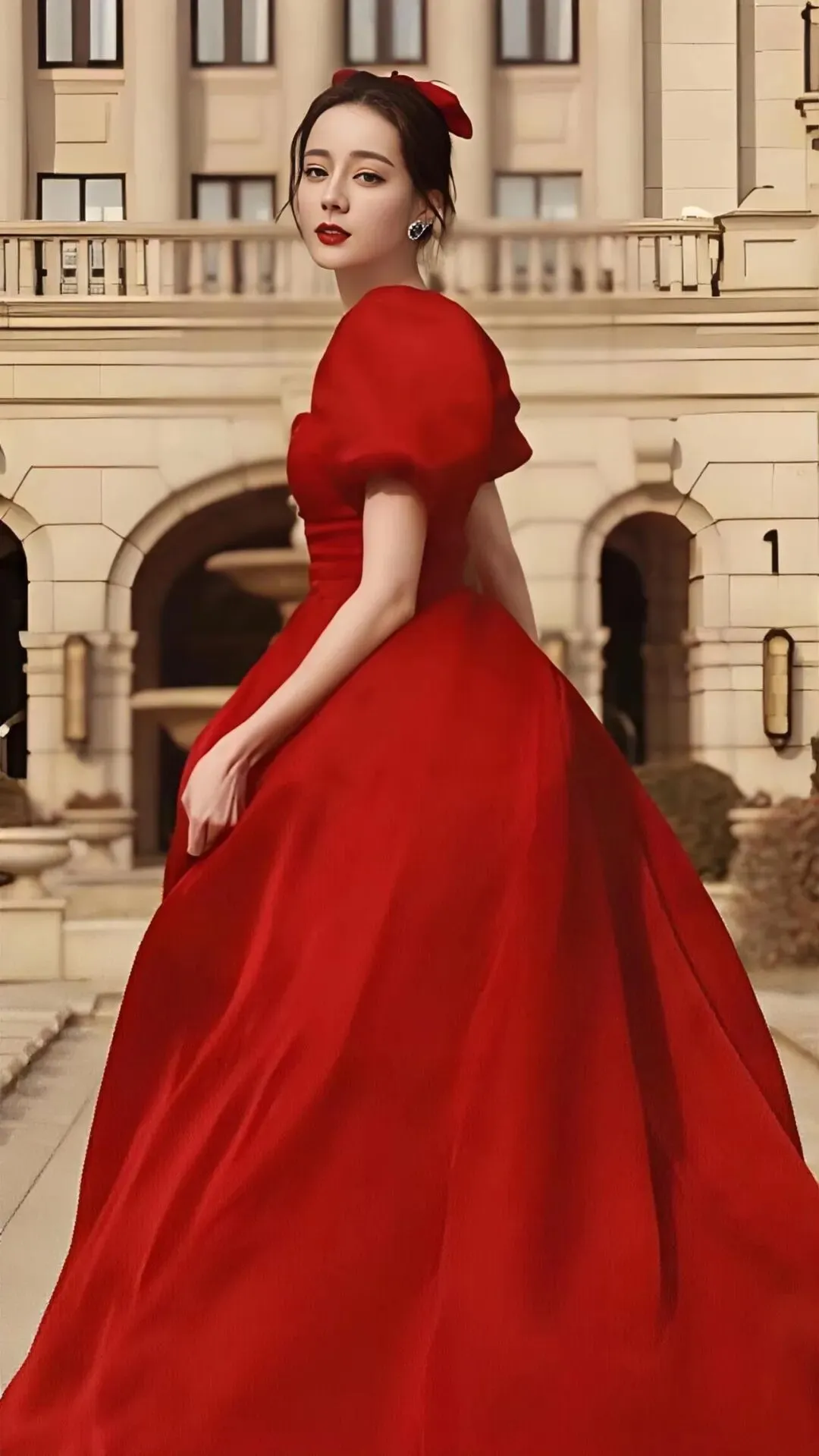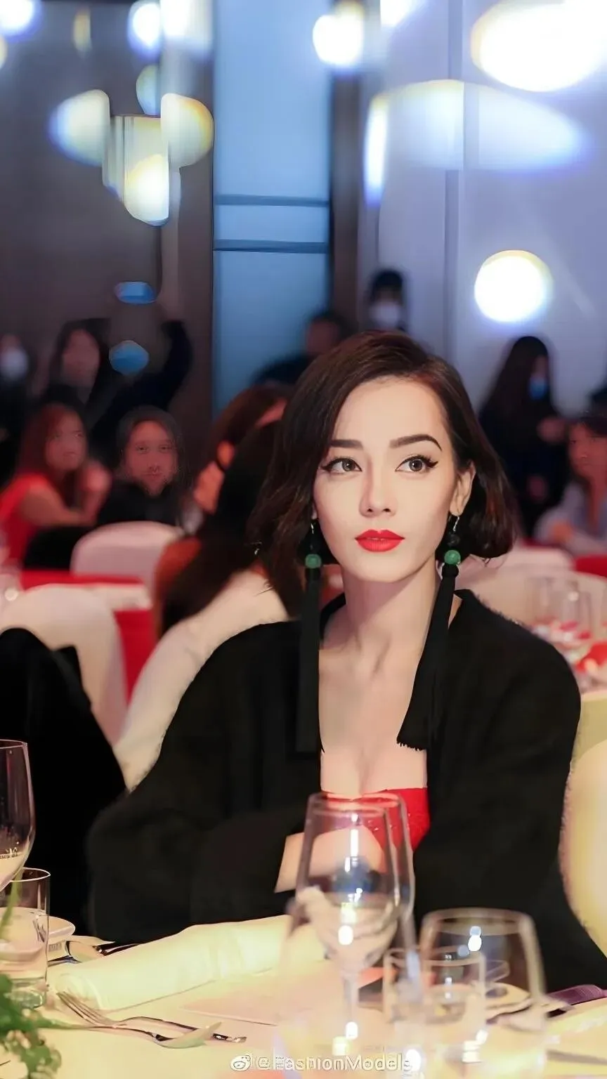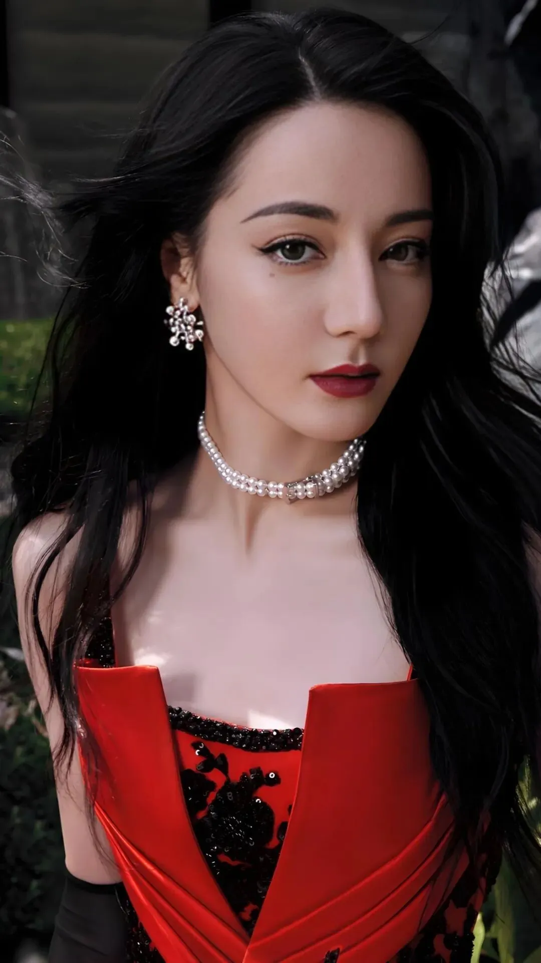饱满的红唇微启,在红色礼服的映衬下,更显得惊心动魄。