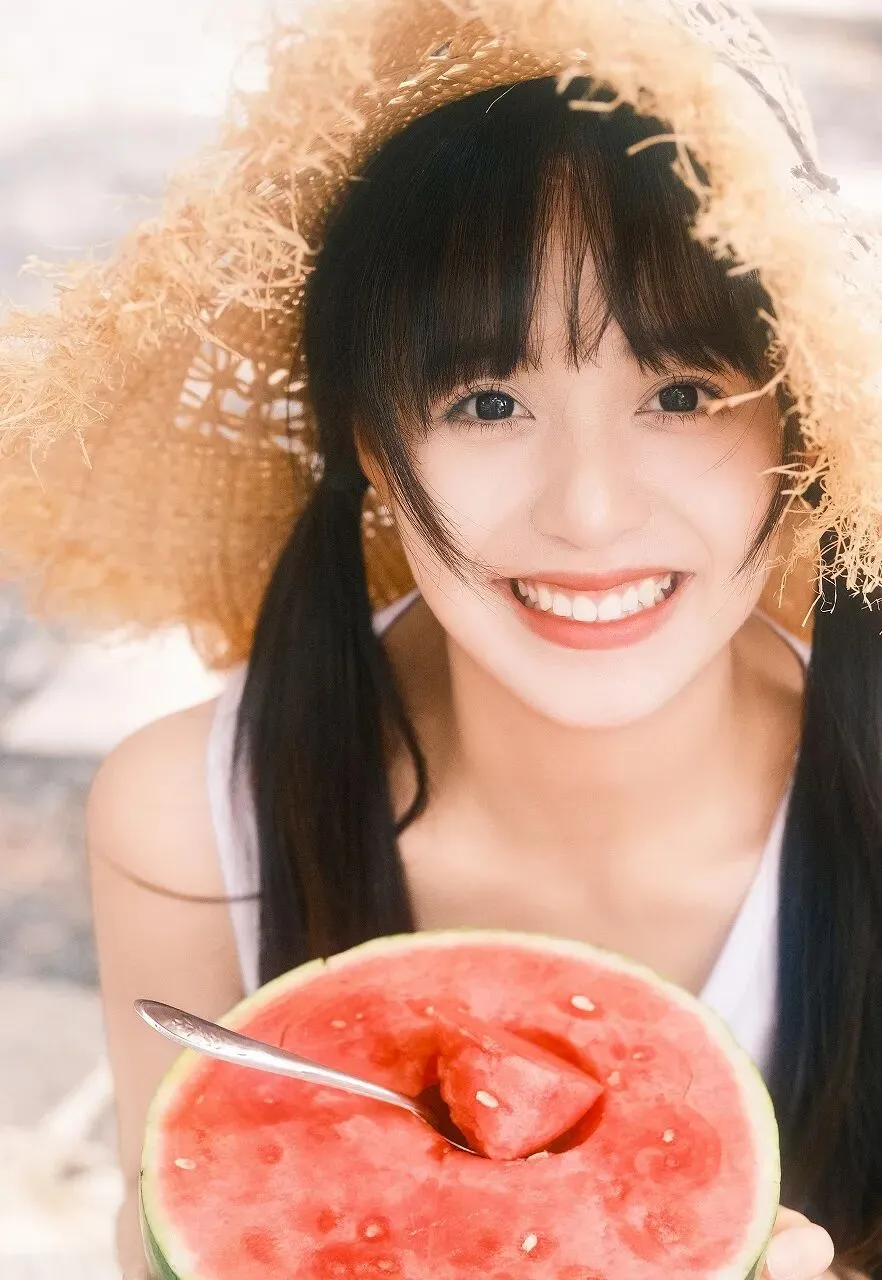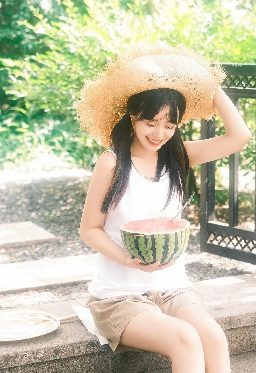 在这个快节奏的现代社会,我们常常被各种琐事和压力所困扰,很少有机会像这位少女一样,静下心来享受夏日的美好时光。我们总是匆匆忙忙地奔波于城市的高楼大厦之间,忽略了身边那些简单而又纯粹的快乐。而这位少女,用她的方式提醒着我们,生活不应该只是忙碌和奔波,还应该有时间去感受大自然的馈赠,去体验那些微小而真实的幸福。夏日的美好不仅仅在于炎热的阳光和清凉的西瓜,更在于那些能够让我们放松身心、回归本真的瞬间。或许是在午后的树荫下,听蝉鸣阵阵;或许是在傍晚的湖边,看夕阳西下;又或许是和亲朋好友一起,分享一块甘甜的西瓜。这些看似平凡的瞬间,却蕴含着生活的真谛和无尽的温暖。让我们向这位少女学习,在忙碌的生活中,给自己留出一些时间,去拥抱夏日的美好。让我们像她一样,带着纯真的笑容,去感受阳光的温暖,去聆听微风的呢喃,去品尝西瓜的甘甜。在这个盛夏,与自然相拥,与快乐同行,让心灵得到一次彻底的放松和洗礼。愿我们都能在这个夏天,留下属于自己的美好回忆,如同这位少女一般,成为夏日里一道亮丽的风景线。