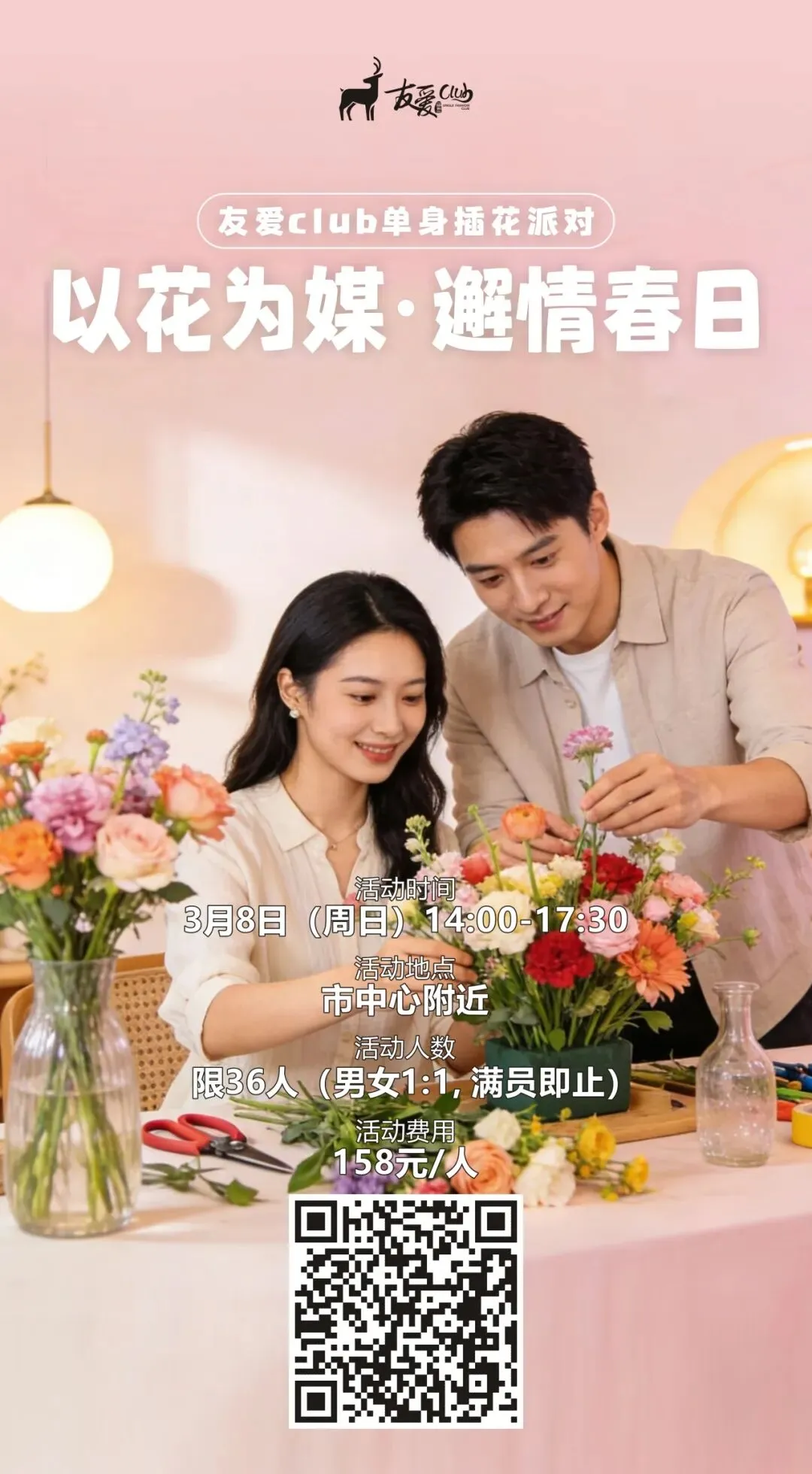 【友爱活动NO.346】3.8女神节插花相亲会:以花为媒·邂情春日 | 遇见对的人