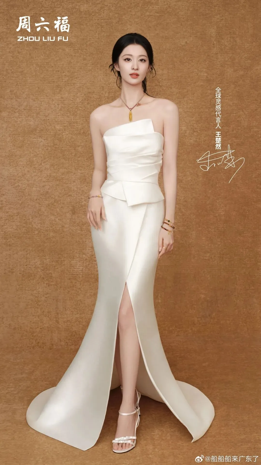 2025年,王楚然直接拿下周六福珠宝全球代言人。品牌方看中的,正是她“古典美人”的气质与日益提升的商业价值。代言官宣后,周六福某款项链销量暴涨300%,网友调侃:“王楚然这带货能力,李佳琦都得喊声姐!”