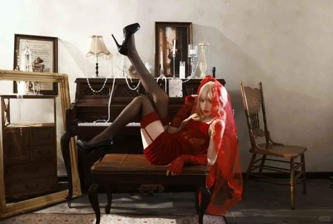 当前位置:首页>美女资讯>红纱焰影|复古琴房里的烈焰红裙纯欲写真