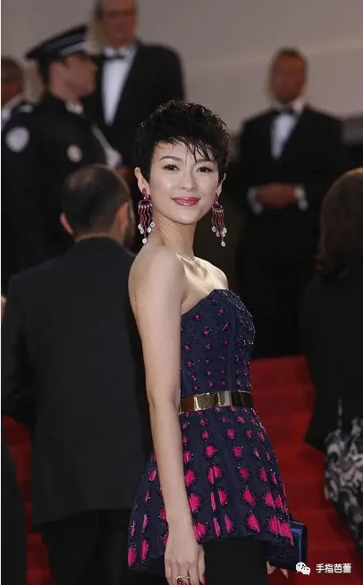 章子怡的女神范:利落短发配抹胸裙洋气精致