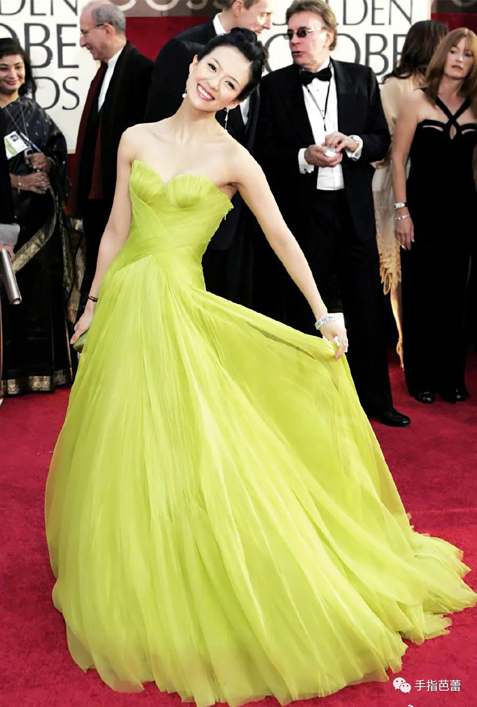 抹胸连衣裙的搭配总是出现在各种红毯活动中,其实章子怡尝试过的抹胸连衣裙也很多,比如下面的抹胸连衣裙搭配起来就非常精致,这种浅绿色抹胸连衣裙的搭配非常清爽,同时结合拖地的裙摆,更好的增强了她的气场,看起来非常率性。