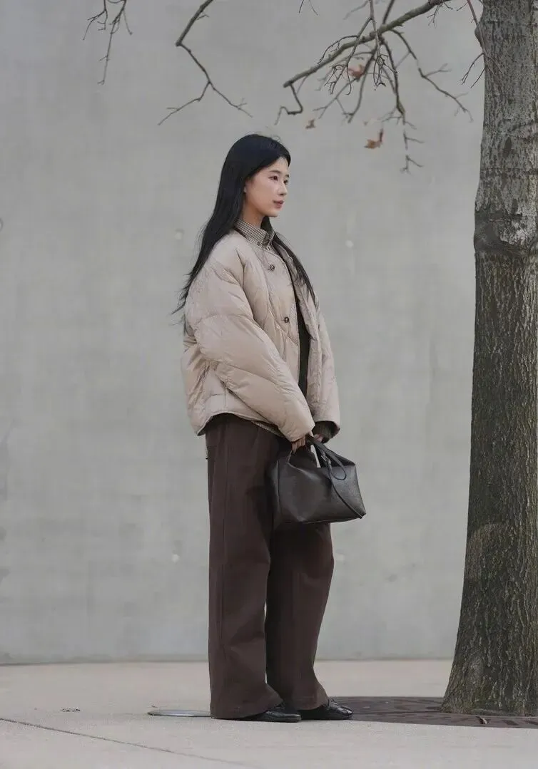 说到实用.,还是要.祭出羽绒.服这个神.器。长.款羽绒服就.像移动的被.窝,零下.天气全靠.它救命。别.看它蓬蓬.的,选对款.式一点.都不显胖。.配个.leggi.ngs和堆.堆袜,上.面宽下.面紧,.反而.显得腿细。.托特包.一定.要大,雨.伞水.杯充电.宝都能塞进.去。.这套搭配虽.然简单,但.真的是.过冬的底气.