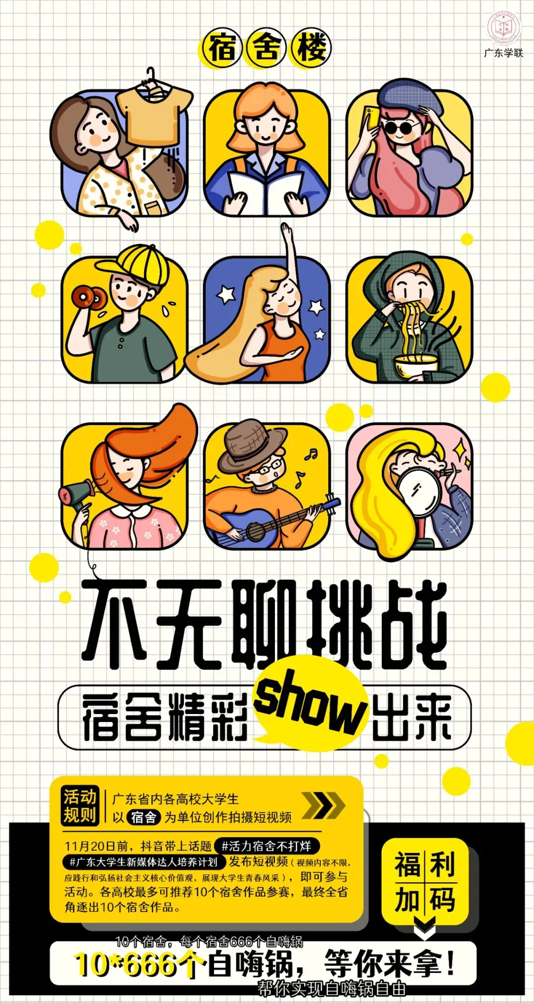 1.本次创意活动的拍摄地点必须是宿舍;宿舍空间有限,大家在拍摄时要注意安全哦)
