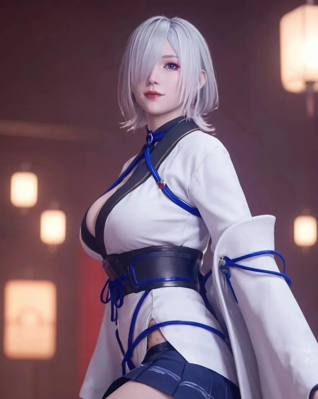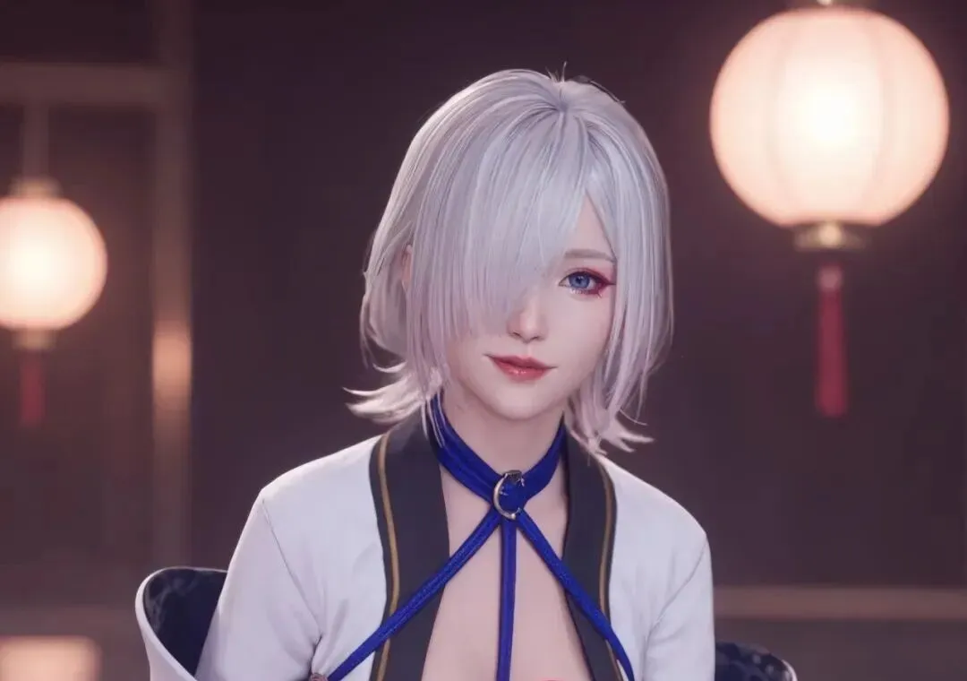 最动人的是她的眼眸。瞳色是极深的墨蓝,在昏暗的雨巷里会泛着淡淡的幽光,像雨夜的深海,藏着无尽的秘密与波澜。初见八云时,眼底是冰封的警惕与漠然;谈及黑龙封印时,是不容置疑的决绝;而在濒死之际,看向八云的目光里,却卸下了所有防备,只剩下纯粹的托付与一丝未曾言说的温柔。眼尾微微上扬,天然的媚意被周身冷冽的气场中和,化作一种极具攻击性的惊艳。