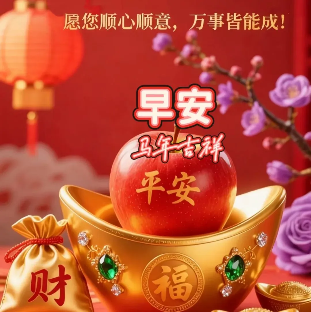 亲爱的朋友,今天是大年初二,2026马年已经拉开帷幕,拜个年,问声好,福禄寿喜来拜访,其乐融融喜团圆,今天收到这份祝福的人,注定2026年一整年里,福星高照,万事顺心。早安!