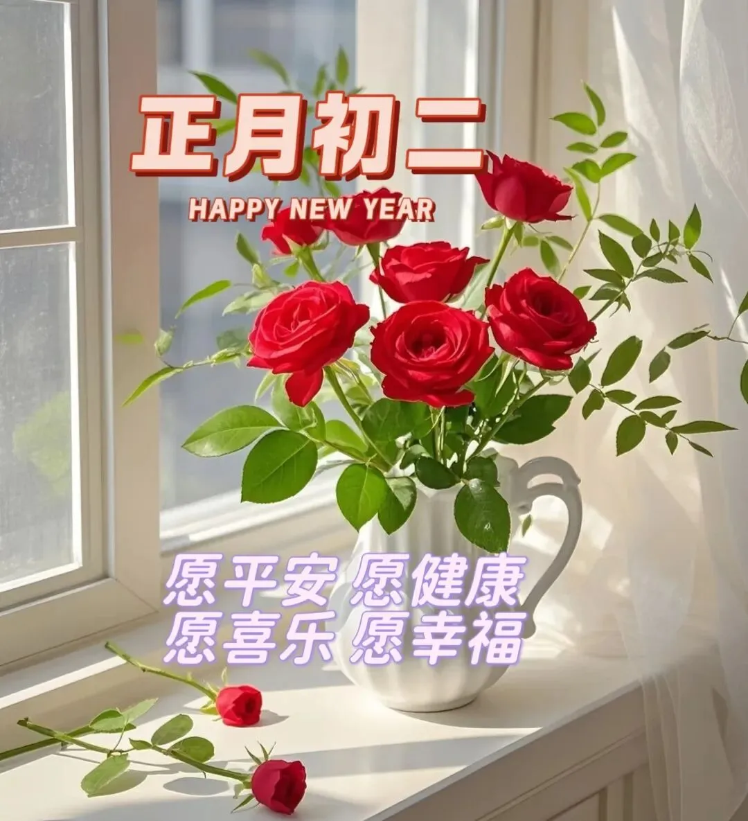 亲爱的朋友,初二到,送祝福。愿你东行吉祥,南走如意;西出平安,北走顺利;中间有健康相伴。新的一年,愿你步步高升,事事如意。早上好!