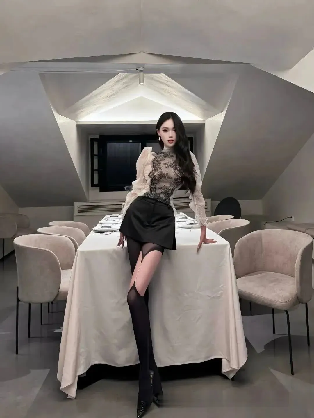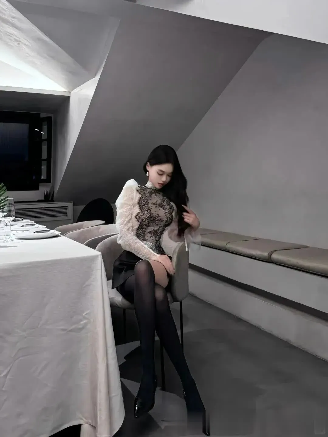 当前位置:首页>美女资讯>美女模特、“个性黑丝+半透蕾丝+超短裙”,显得轻盈又优雅,修长的腿部线条更显气质~