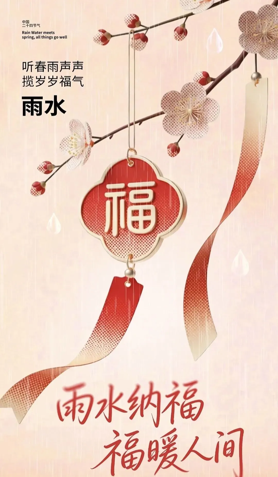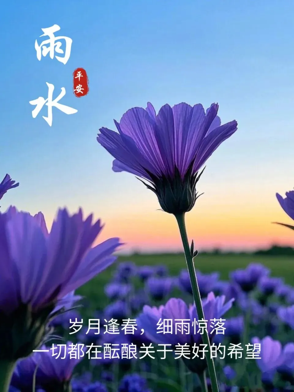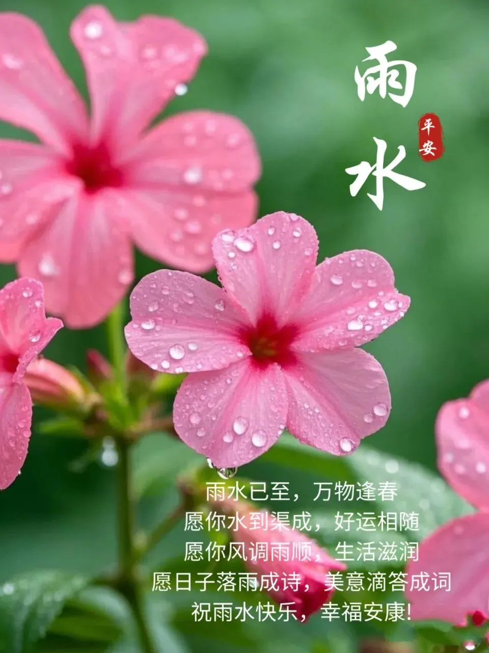 2. 雨水至,万物苏🌿。古人云“雨水有雨庄稼好,大春小春一片宝”,春雨滋养大地,孕育丰收🌾。好雨知时节,当春乃发生,愿这绵绵细雨,为你带来好运与福气,生活有盼头,事业有劲头,平安喜乐常相伴🌸。