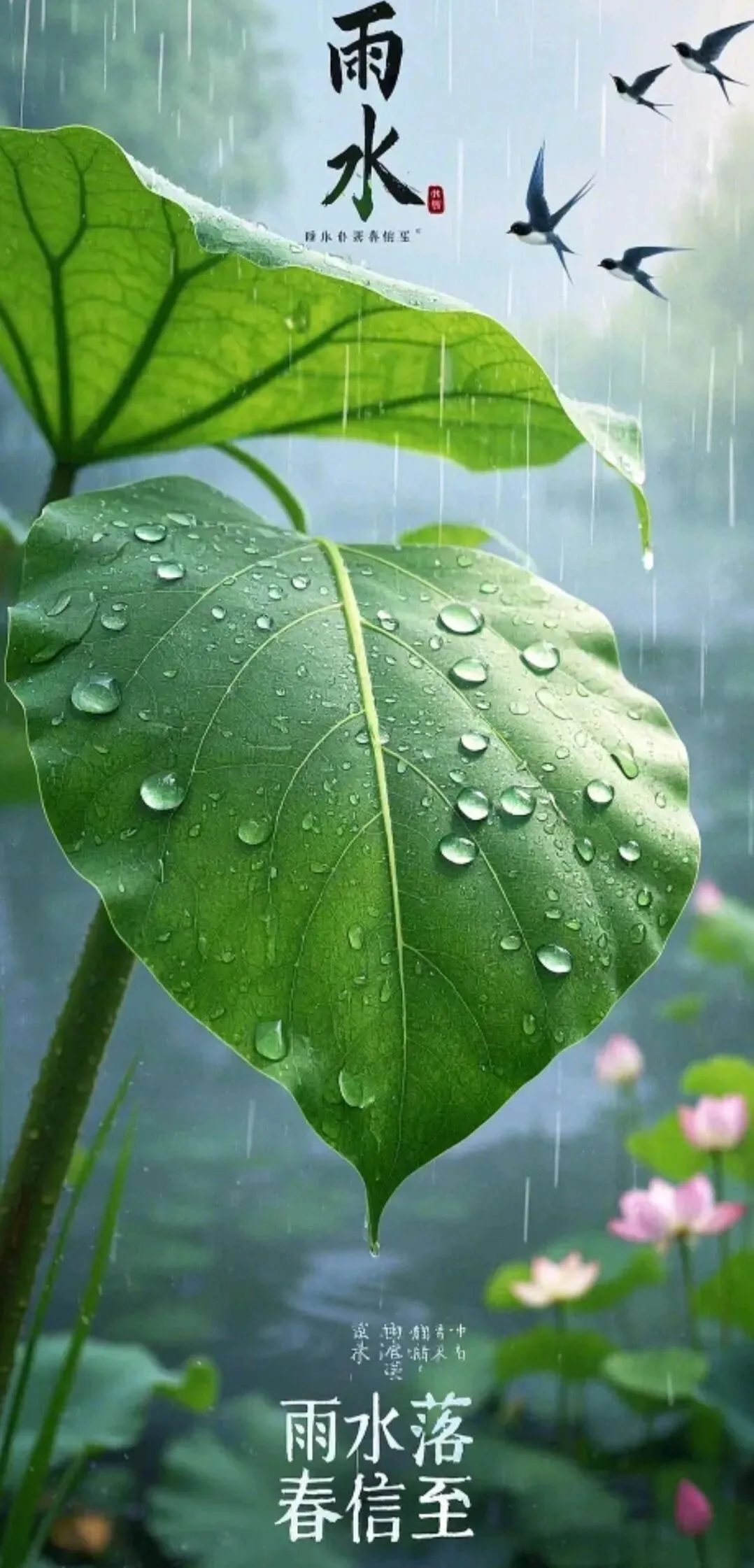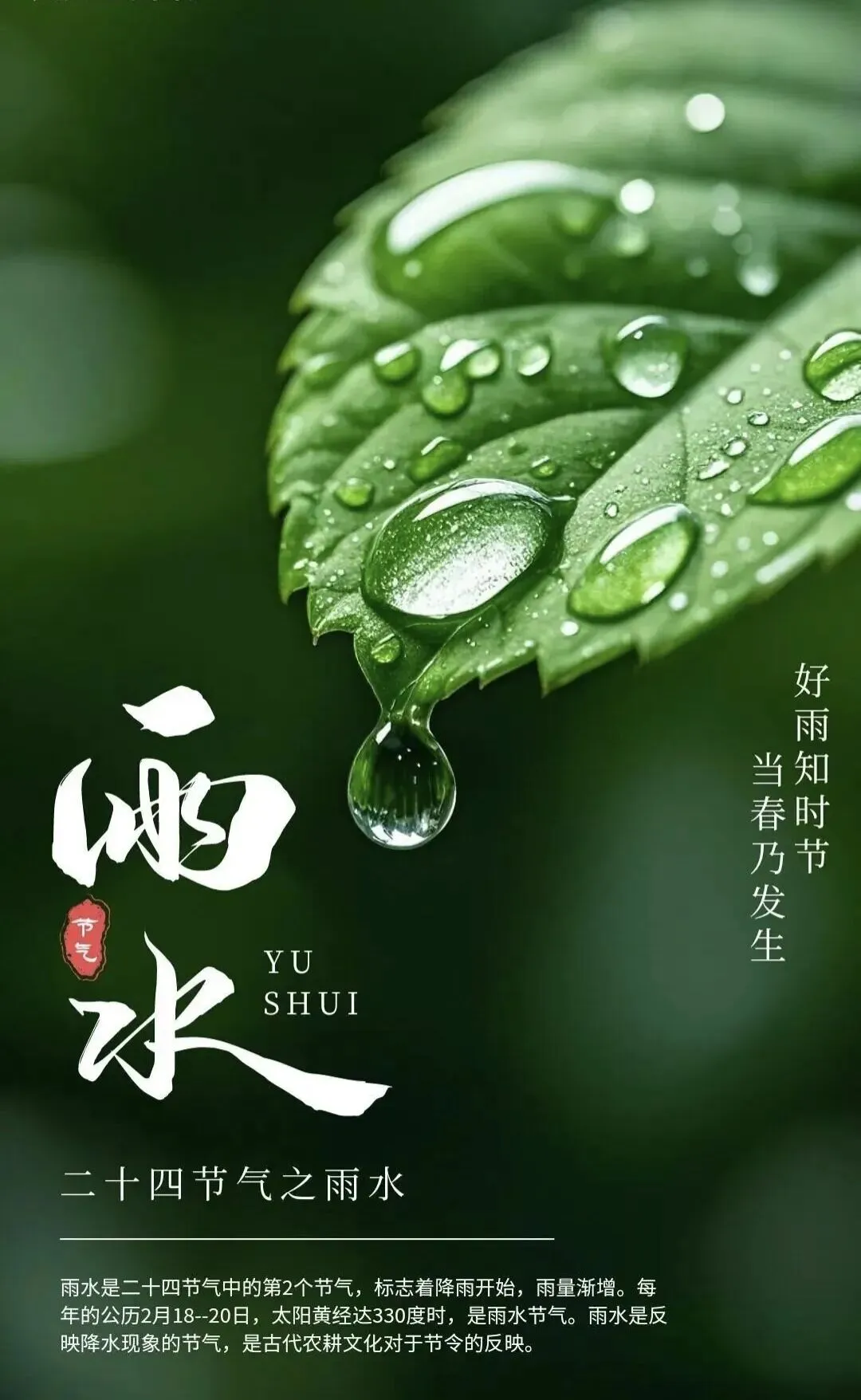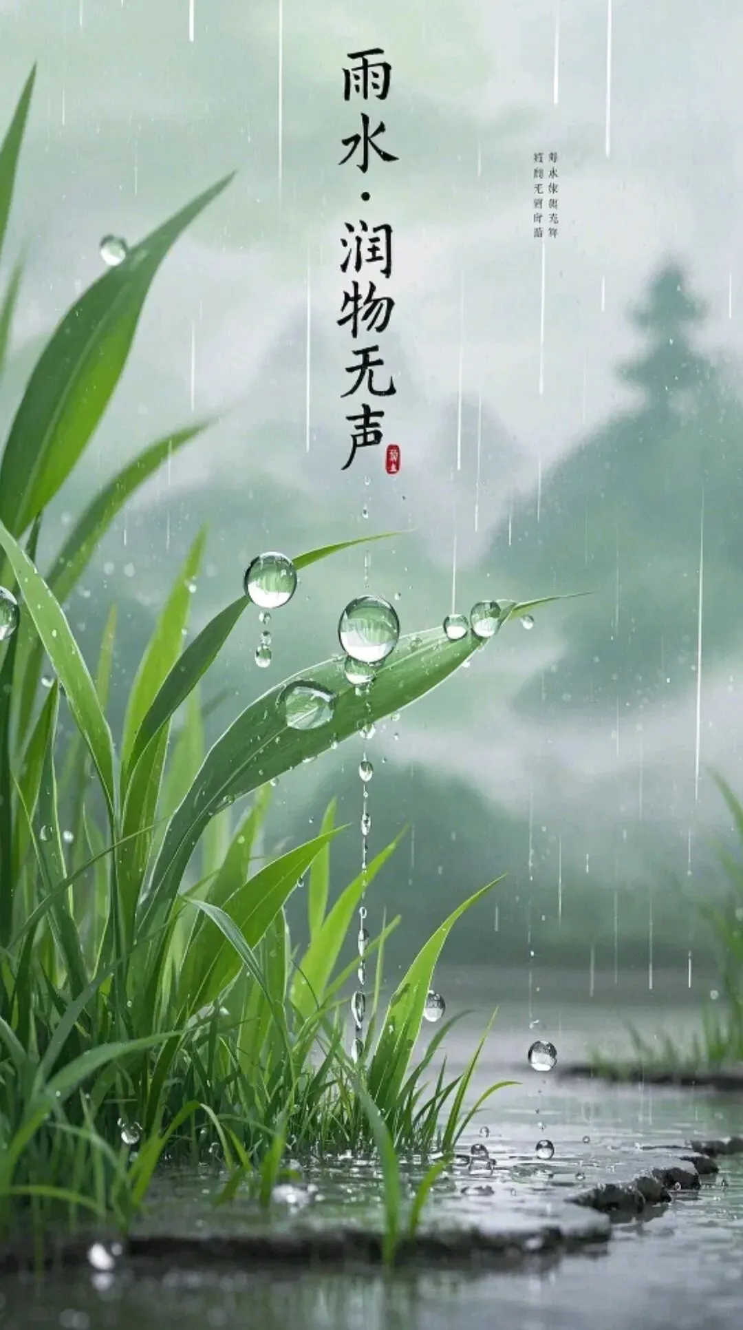 1. 好雨知时节,当春乃发生🌧️。雨水节气至,东风解冻,细雨润物🌱。民间常说“春雨贵如油”,每一滴都藏着生机与希望。愿细雨洗去疲惫,润泽心田,家人安康,事业顺遂,日子温润如玉,步步皆欢喜,岁岁常安康✨。