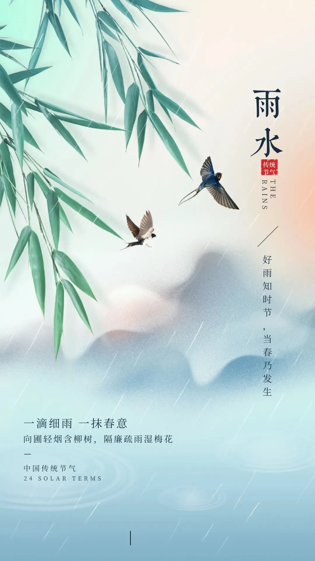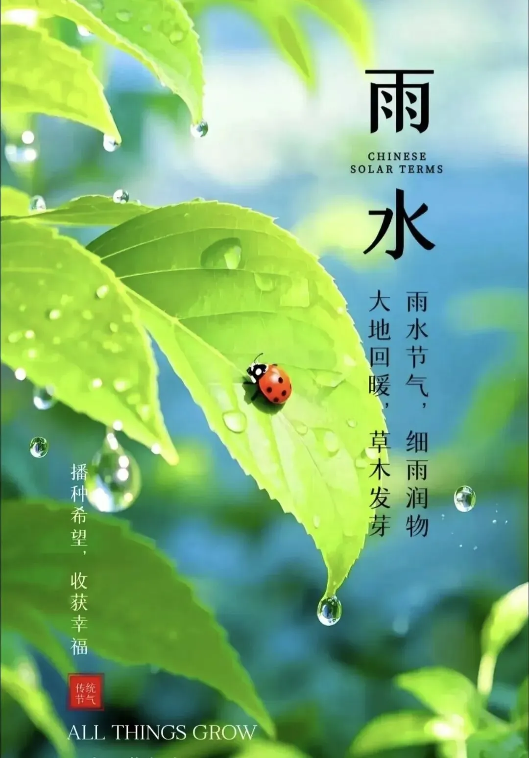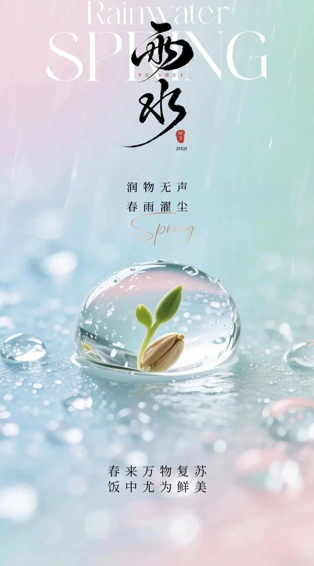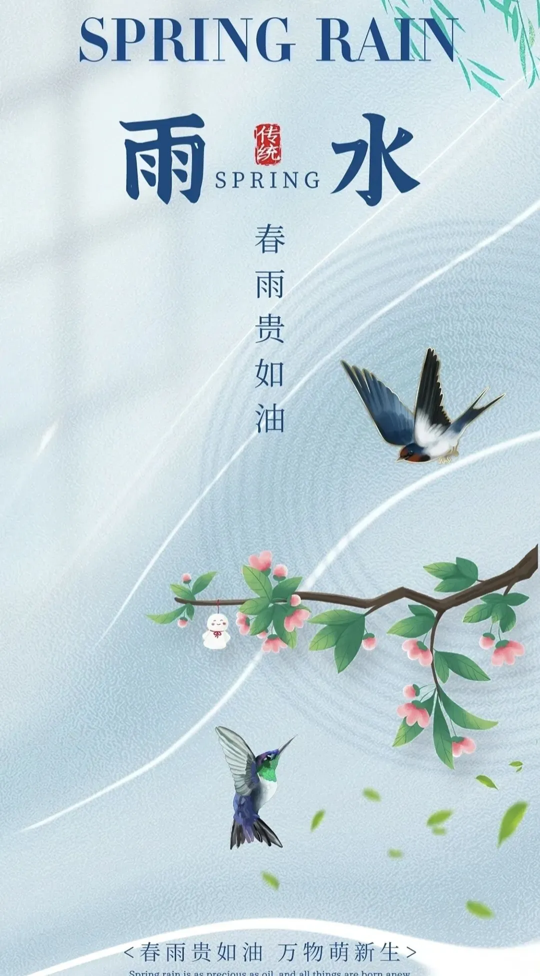 1. 好雨知时节,当春乃发生🌧️。雨水节气至,东风解冻,细雨润物🌱。民间常说“春雨贵如油”,每一滴都藏着生机与希望。愿细雨洗去疲惫,润泽心田,家人安康,事业顺遂,日子温润如玉,步步皆欢喜,岁岁常安康✨。