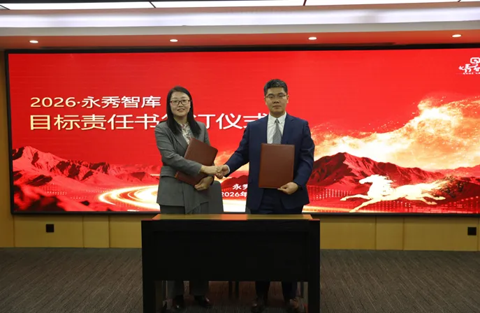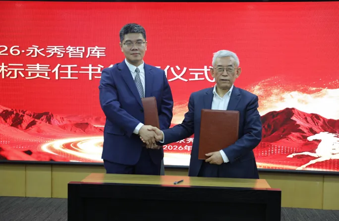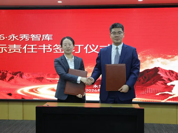 永秀智库理事长白永秀教授、总裁鲁能博士与各部门负责人签订2026年度目标责任书,一纸承诺,一份担当,目标责任书的签订,既传递了责任与使命,更凝聚了信心与力量。新的一年,永秀智库各部门将紧盯目标、狠抓执行,全力以赴推动年度各项任务再攀新高!