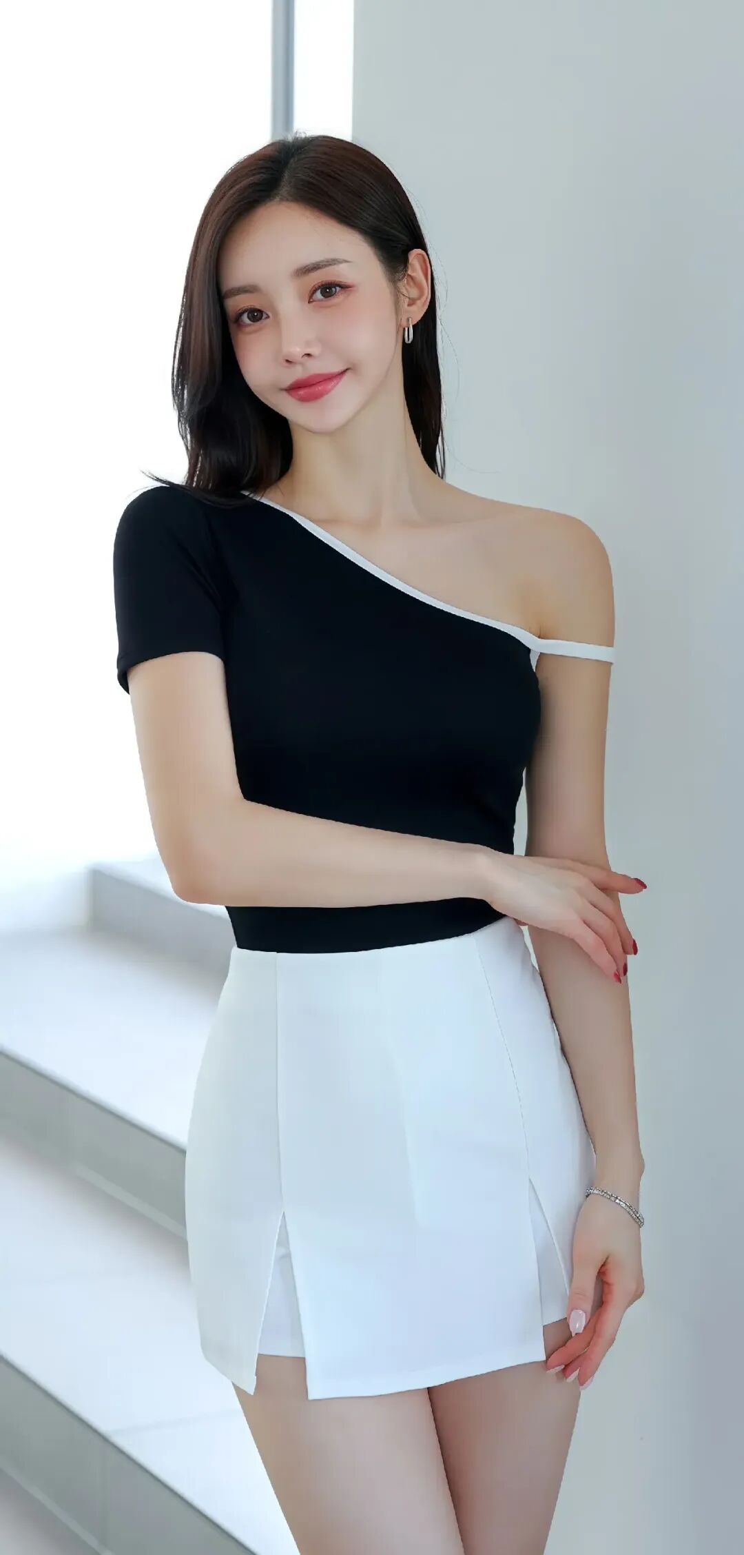 当前位置:首页>美女资讯>模特孙允珠甜美少女风穿搭,黑色上衣搭配白色短裙,清新自然!