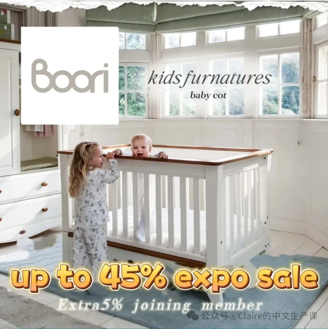 🎈Boori家具和床具:安睡每一夜,成长更安心。澳洲知名家庭家具品牌携热门婴儿床,书柜,书桌和儿童床等展示家具方便家长浏览和咨询;限时促销折扣up to 45% off,加入会员额外享受5% off。