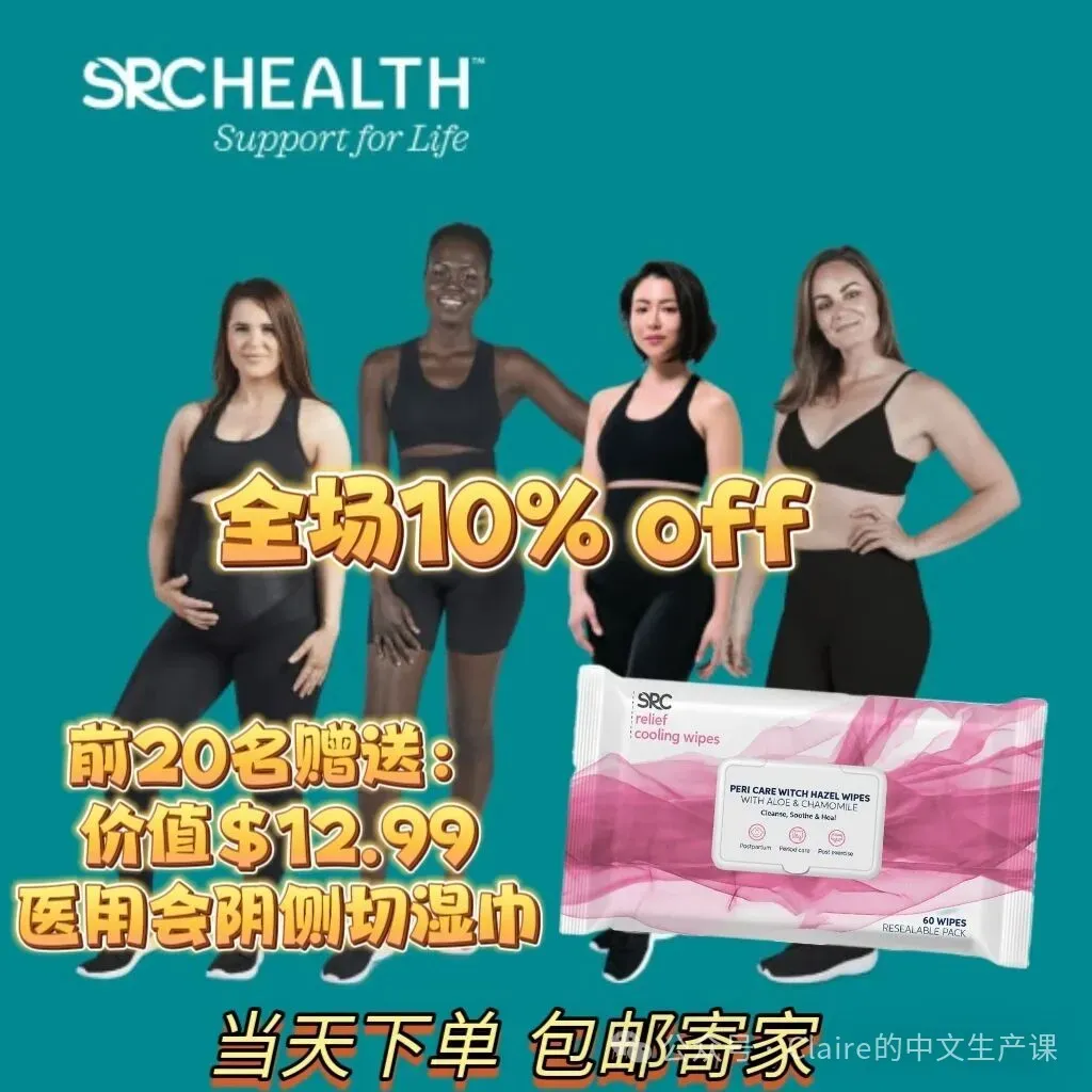 🎈SRC产康产品: 澳洲药局认证有药物疗效的产康修复裤子。全场10% off,现场一对一量尺寸,提供修复建议和试穿。前20名购买者可获得1包医用侧切湿巾。呵护产后妈妈身体修复,孕期产裤减少妈妈负担。