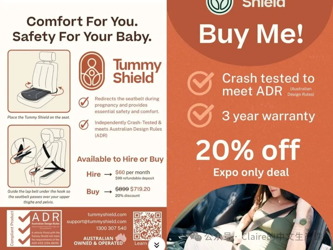 🎈Tummy Shield:孕妇专用汽车安全带,防止车祸时猛刹车汽车安全带的惯性损伤胎儿脊椎和胎盘组织。专为孕妈设计,澳洲设计和认证,安全更贴心。限时优惠20% off。当天随机赠送一名妈妈免费的安全带座椅。