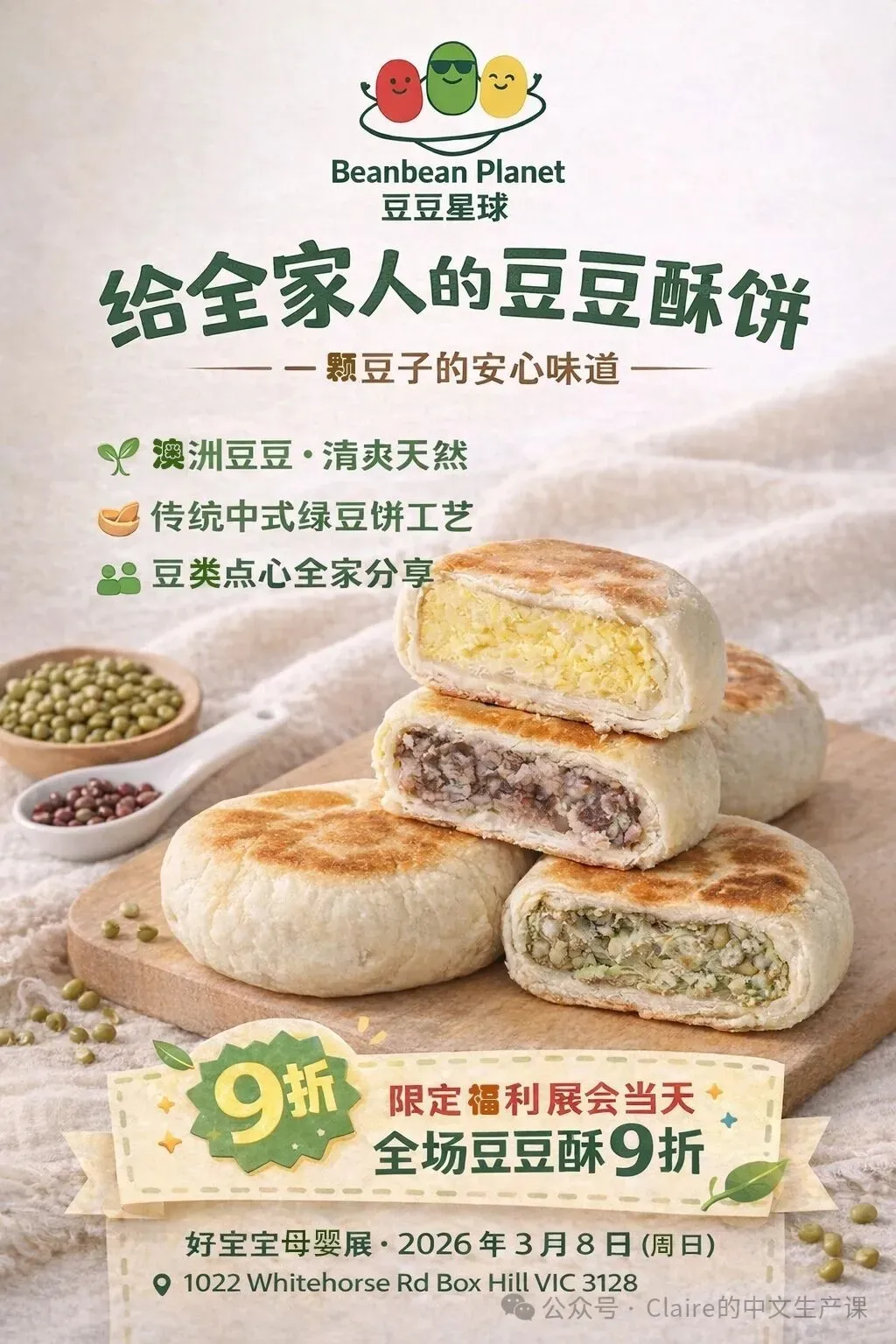 🎈豆豆星球:给全家人的豆豆酥饼,用澳洲食材,精心研制,好吃清新,安抚我们的中国甜品胃。全场豆豆酥九折。