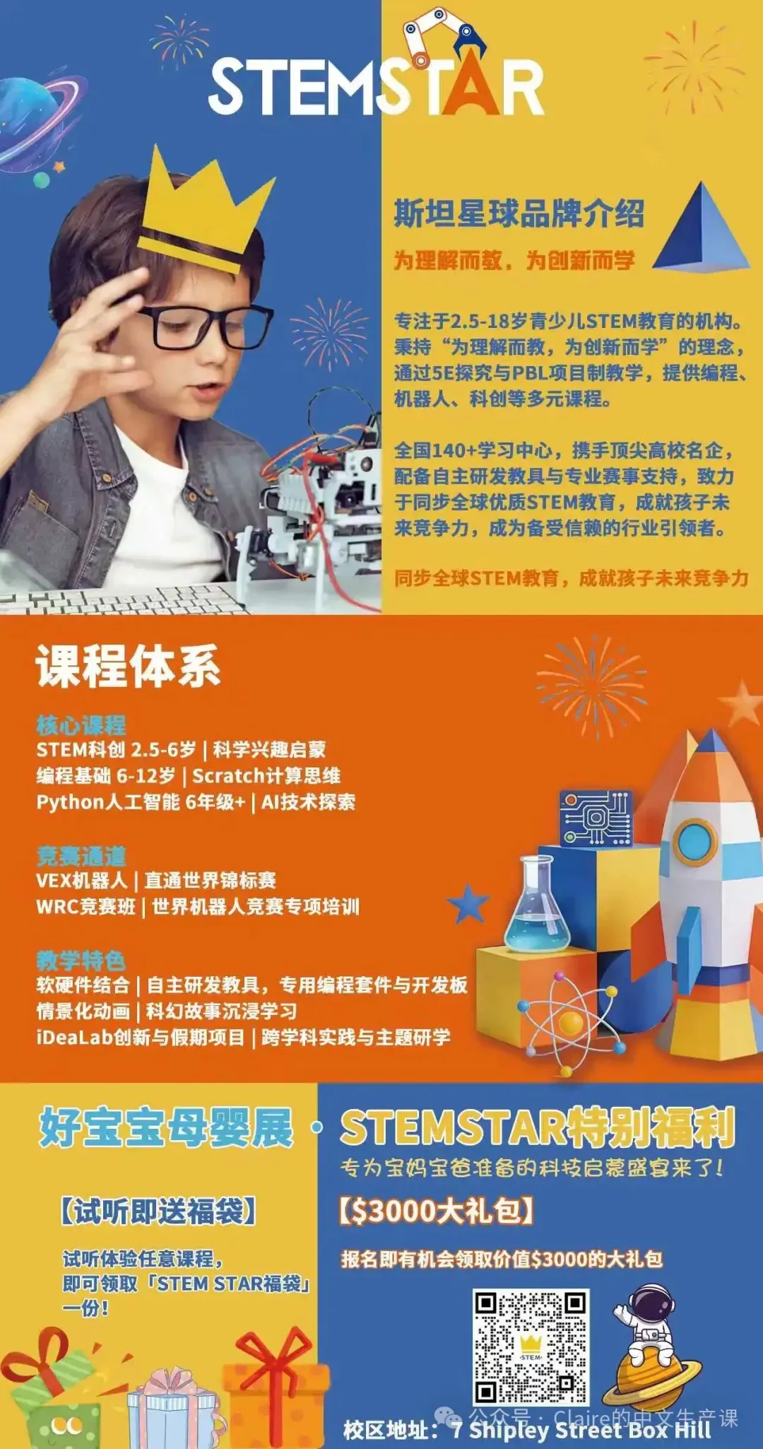 🎈STEMSTAR启蒙教育:为理解而教,为创新而学。专注于编程,机器人科创等多元课程。让你的孩子开发科创智力,成就未来Ai时代竞争力,赢在起跑线上。试听即送福袋,报名即有机会获取$3000大礼包。