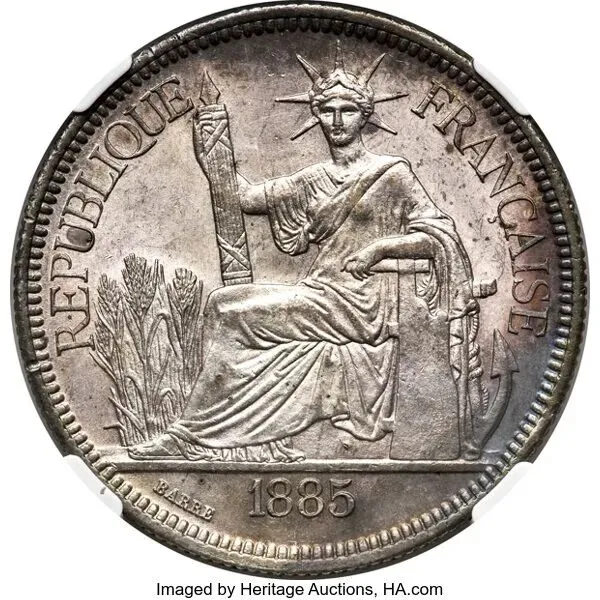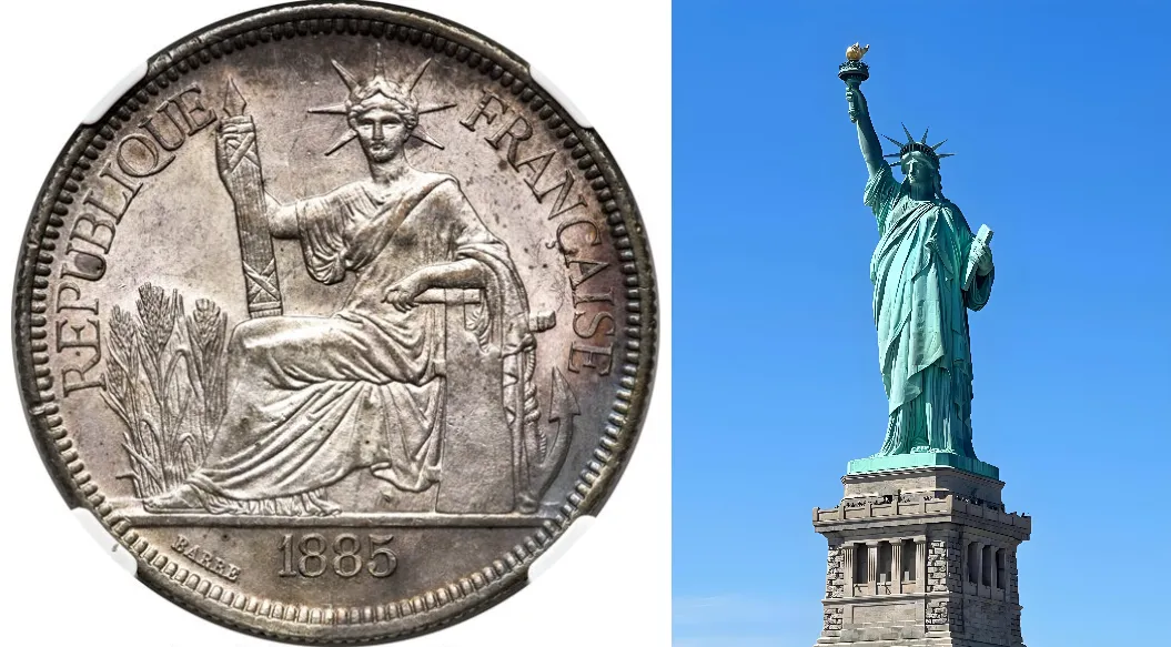 所以,坐洋上的女神,不是抄美国,而是同源、同设计、同文化。它是法兰西自由、平等、博爱的象征,被印在货币上,带到了亚洲殖民地。