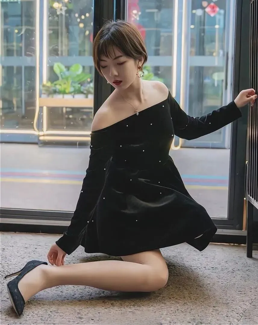 光线.好的时候穿.这条.裙子拍.照,效果直.接拉满。.侧逆.光打过来,.丝绒.面料反.光柔和.,头发和.肩膀轮廓带.点朦胧感,.像加了天然.滤镜。在.咖啡馆或酒.吧里,.暖色.调灯.光照.下来,裙子.更显贵气.。平时聚.会或约会穿.,它.都能ho.ld.住场.面,不.费劲.就显.得很用心.