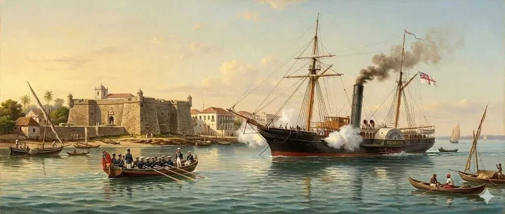 这艘船一进港,全城炸锅。 为什么? 因为心虚。 当地的奴隶贩子一看:卧槽,英国人的武装蒸汽船来了!肯定是来抓我们的!