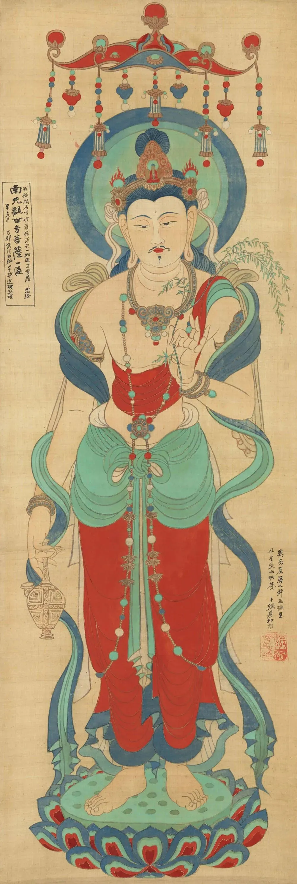 刚到中国的他,形象非常“爷们”:身材魁梧、面容庄严,不少造像上还留着小胡子,是一位威风凛凛的大丈夫菩萨。