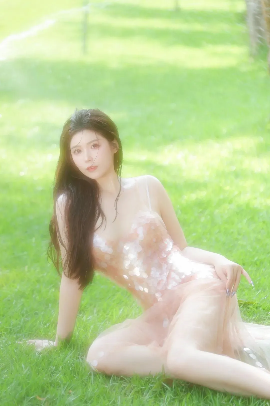 📷林间薄雾漫过脚踝,人鱼姬亮片在光里流转。浅粉纱裙轻裹曲线,湿发垂落肩头,每一步都像把春日揉进裙摆里,朦胧又撩人。
